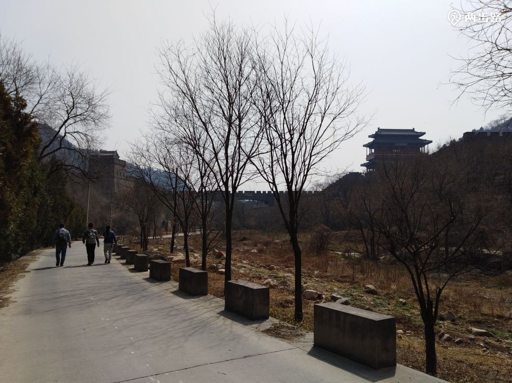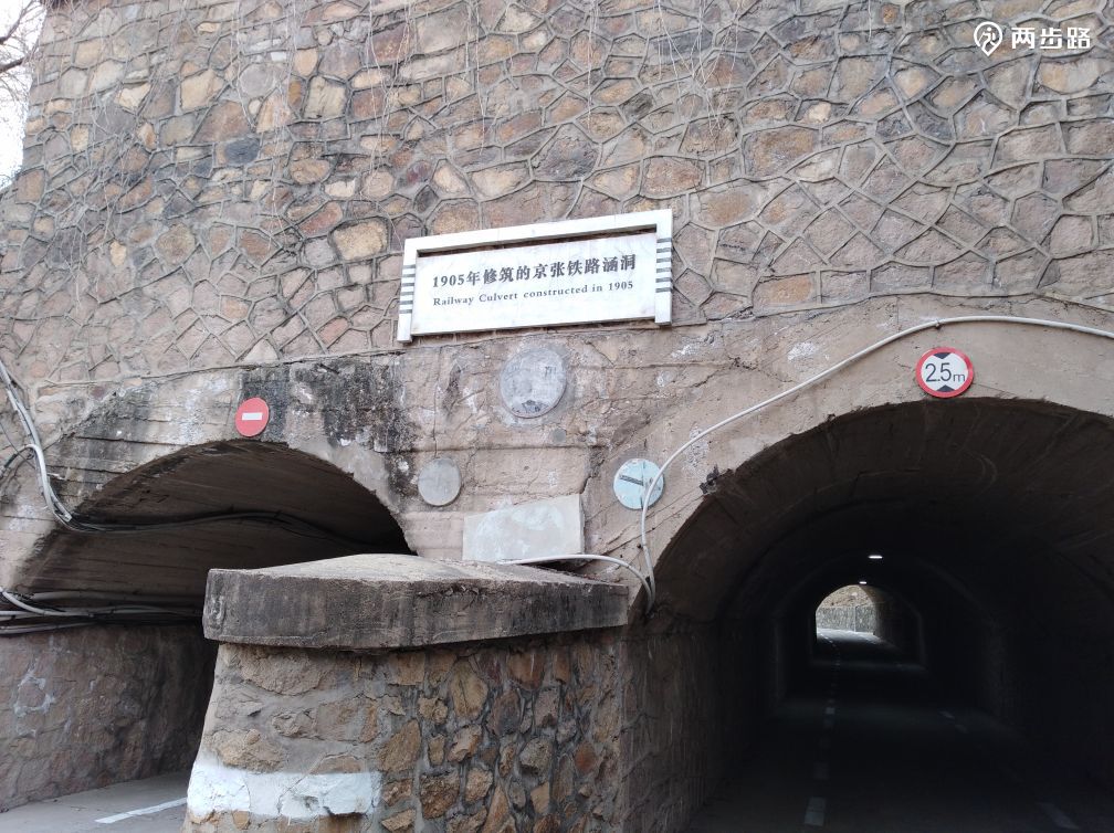 八达岭下车,行经雄伟的关城、寡清的旅游街、熙攘的人群和川流不息的大巴,在青龙桥左转,穿“1905年修筑的京张铁路涵洞”,向着八达岭陵园方向行进。