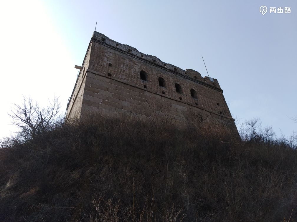 我们沿长城外侧小道前行,城墙已修整如新,难言沧桑,高可四五米,无轻易可上口,这也从侧面印证了长城的防御作用。无线通信塔旁的楼脚,有人倚墙放了一个短梯,有一定攀爬能力,可抠缝而登。