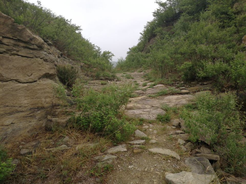 路上铺的石板,勉强能识别出是人力所为,上面的痕迹据说是车辙,但我表示怀疑,对于车来说这种坡度有点大,主要还是牲口在走吧,辽国皇帝要么骑马,要么坐轿,绝不会在么陡的路面乘马车。