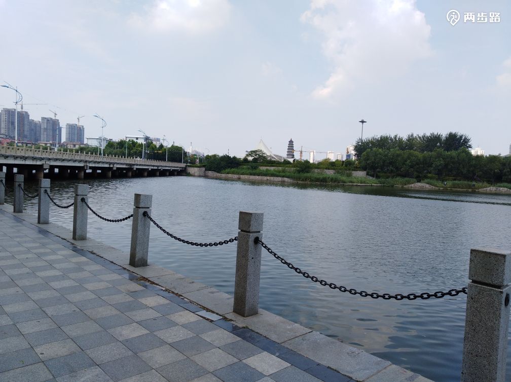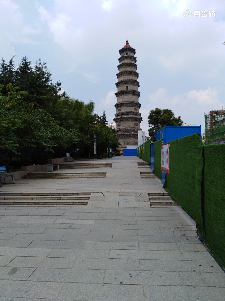 遥见河西岸龙泉塔影,八角九级、砖石结构,塔高43.35米,密檐式佛塔。百度说:“始建时代文献无考,据有关方面专家观察其风格,当属北宋时代”。记得中学时,这里还是个大院子,无人看护,蹬阶可升,墟落古碑仆地,残字淹漫,碑上文字载明是赵宋之物。现今只余下塔周一圈铁栏杆,古碑无存,终于“文献无考”,良可深叹。