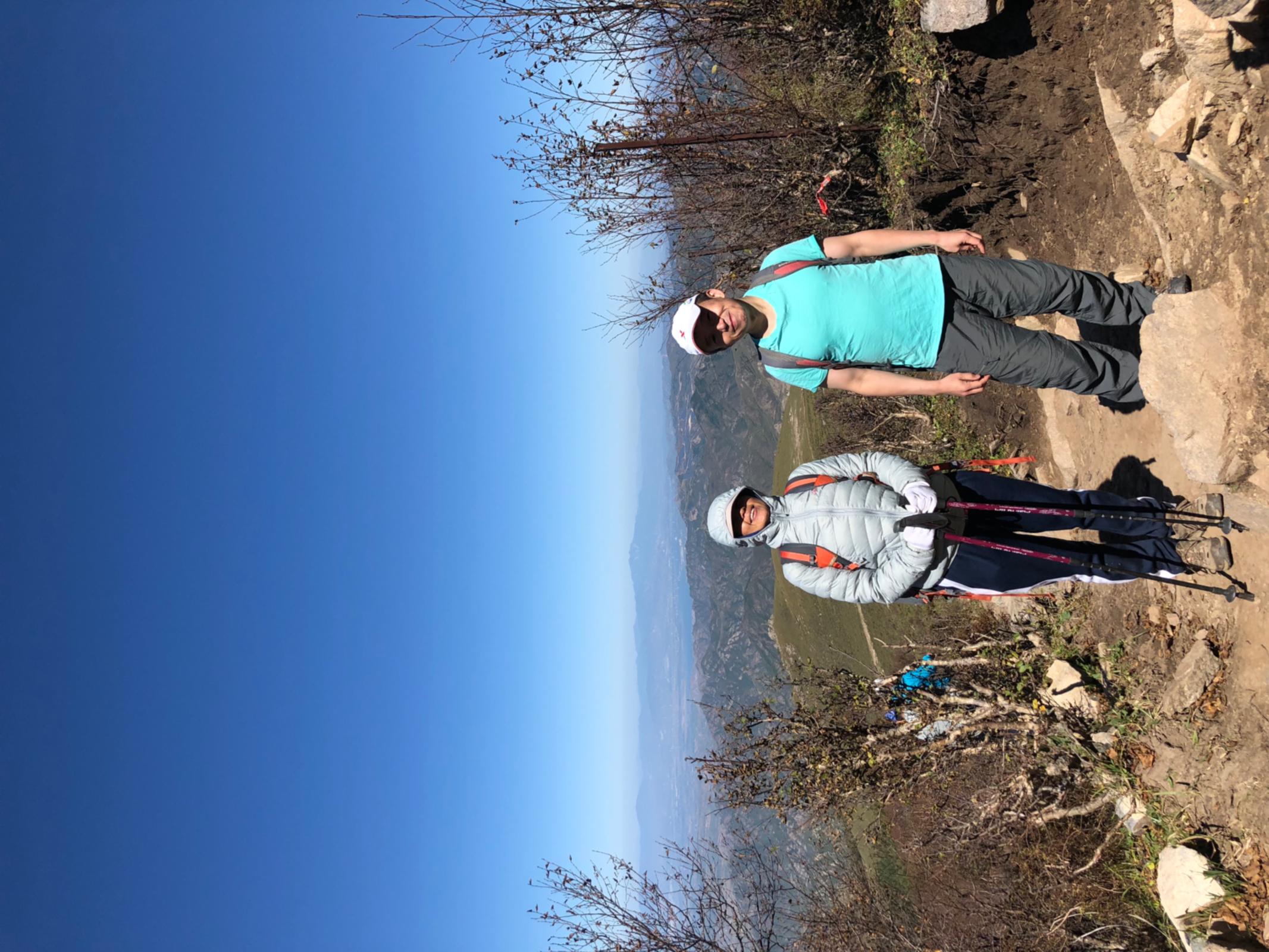 72岁的老汉老田为我们拍张合影(老汉健步如飞 ,说是今年已经登顶北京各山顶三十余次了,那身板,啧啧,到那年龄,出走社社友里,大概阿混能有一拼)