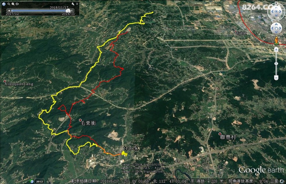 实际线路图,黄色是此次行走的线路。