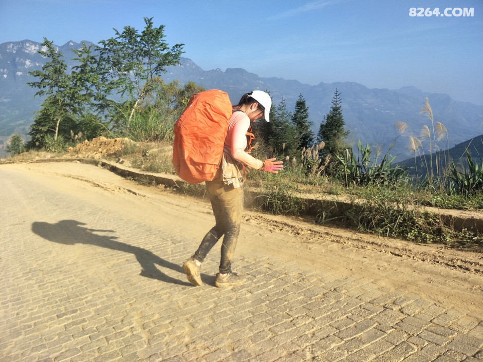 云端漫步当天感冒了,她在宾馆呆到14.30,才开始坐车到阿碑村,17.00开始步行11公里,于晚上19:20到达湾塘乡政府。