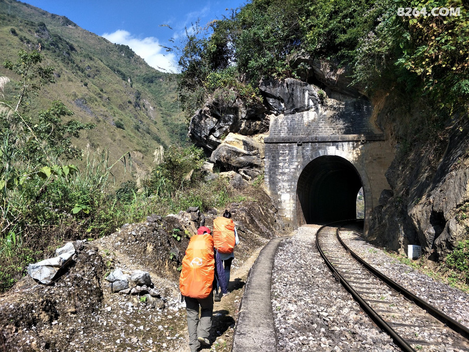 剩下4人,放弃那种为了减少枯燥而设计的上山折腾的线路,决定老老实实地全程走米轨铁路,这样毫无悬念,一天内沿着铁路走了30公里,过了40多个隧道。