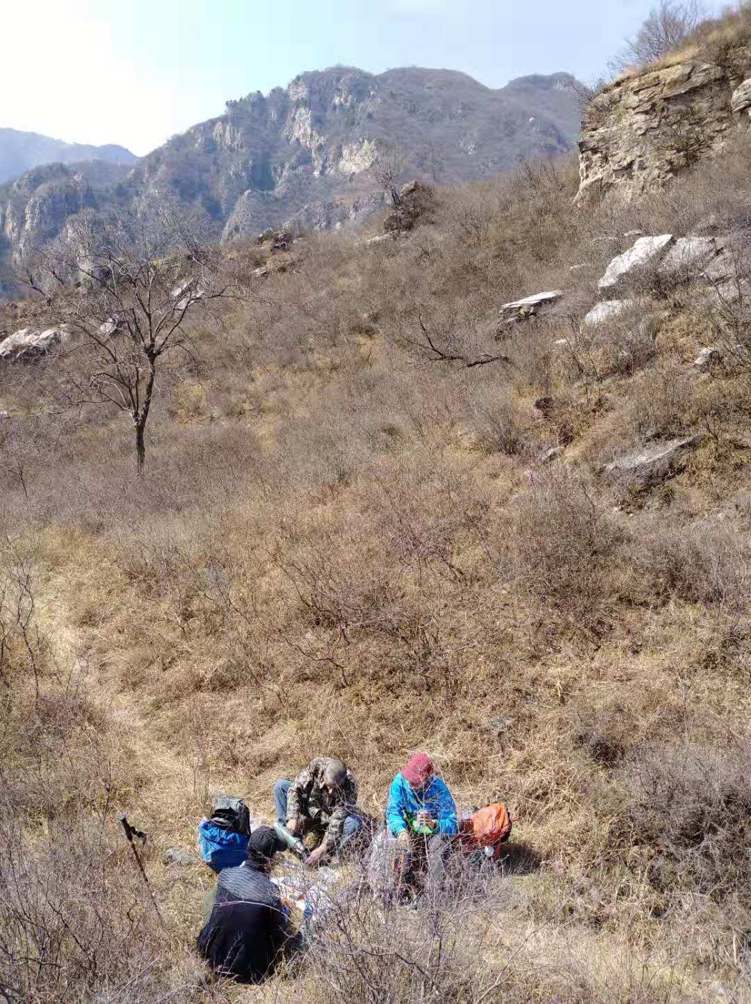 经过猴舍,经过军事管理区,经过景区大门,来到涞沥水村。从涞沥水到棺材山,几乎每条沟、每道脊都有路。由于@西山小小 头天刚走了圣水峪-天狼谷-月牙鞍-涞沥水,我们今天没有走月牙鞍,刚开始走的是车玉沟,经过埃米亭。