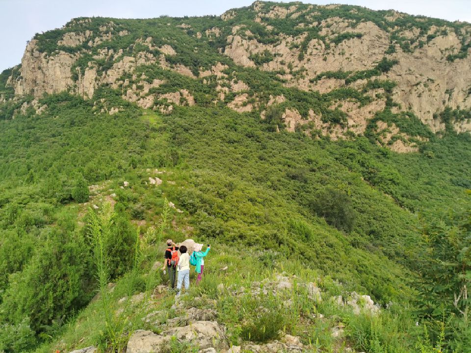 出洞,沿右侧小路登顶。这是此行最高点。后面一段刀刃状的山脊,走起来颇为过瘾。