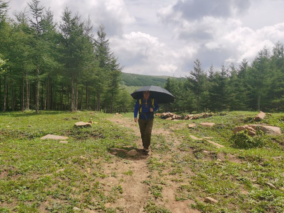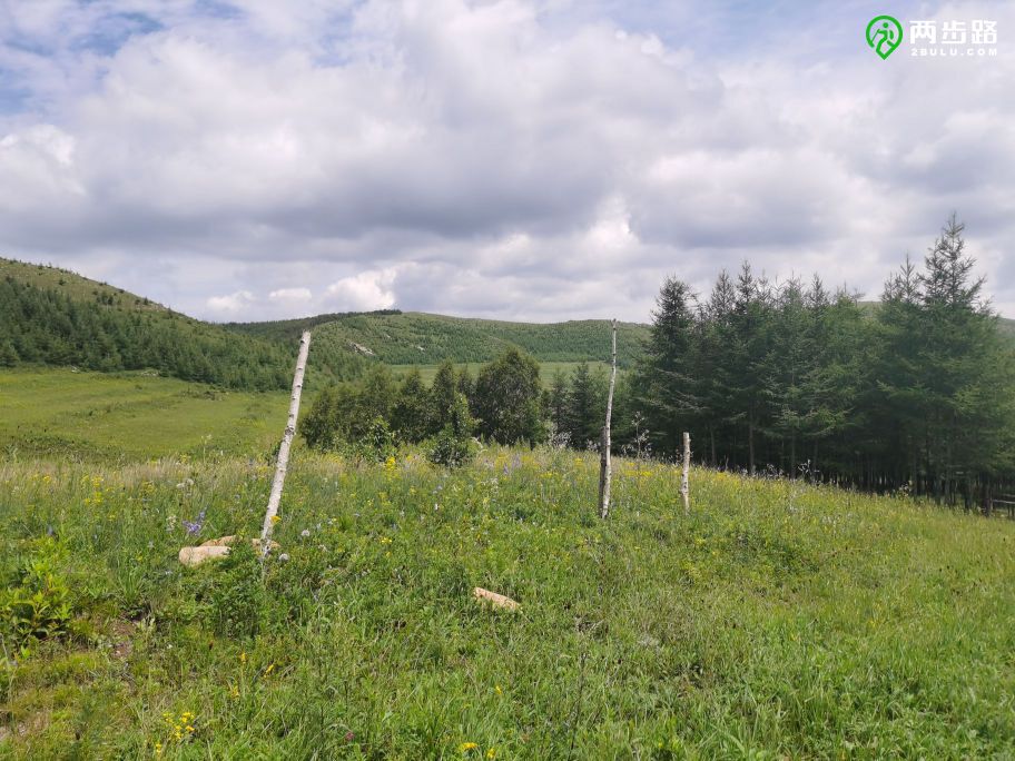 山脊很宽阔,总体上起伏和缓,铺满草甸,与白桦林和落叶松林交错,三道铁丝加木柱构成的圈栏绵延在山脊上,将草场分开,防止宁城县和喀喇沁旗的牛偷渡。我们偶尔会钻过铁丝网,以寻找更好走的路。后来,围栏被网眼更加密集的铁丝网取代,保护东侧的黑里河自然保护区不被牛群破坏。铁丝网两侧的植被呈现出截然不同的面貌,保护区内,草长莺飞,繁花似锦,而铁丝网另一侧,有些草甸已经呈现出过度放牧的迹象,植物种类单一,矮小,稀薄,黄土出露。