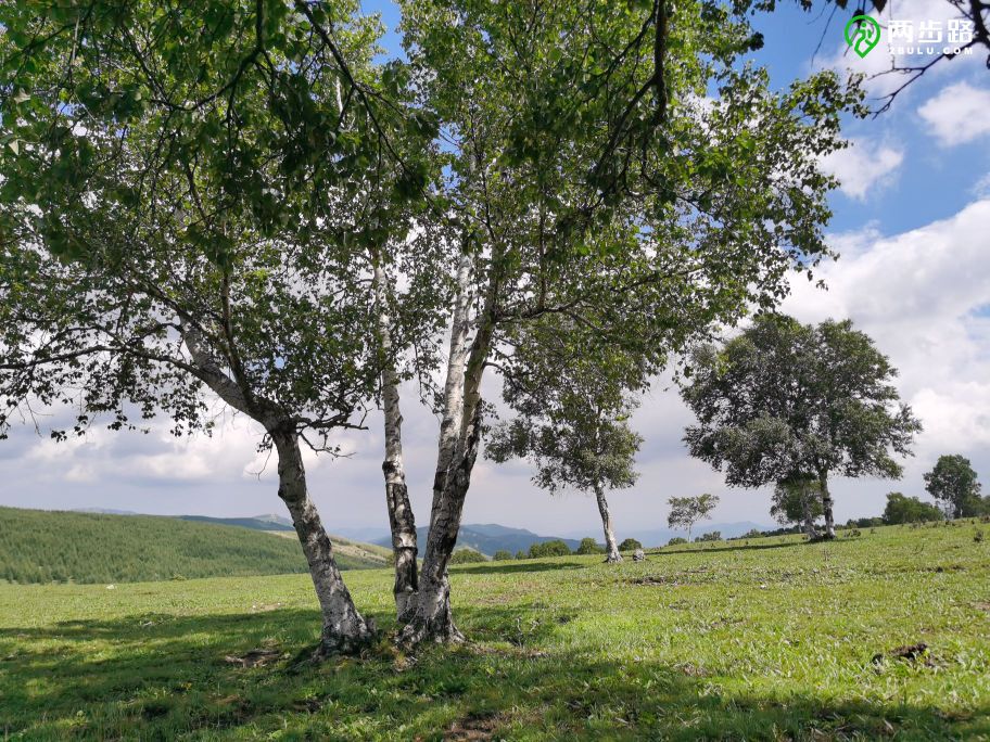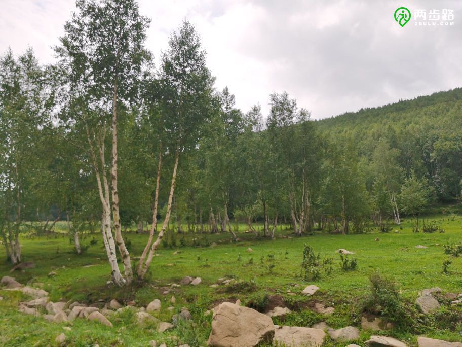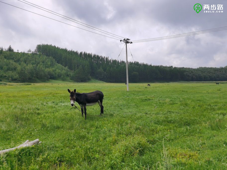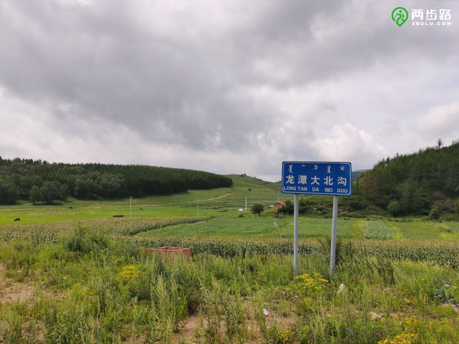 南沟门只是水泥路的终点,不是最深处的村庄,从南沟门开始,一条沙土路一直沿平缓的山谷向上延伸,依次串起龙潭、三间房和龙潭大北沟三个村子。村子都不大,掩映在草场、白桦林和松林之间。龙潭大北沟的村名标牌一直插到离村子百米外的野地里,蓝底白字,汉蒙双语,而且蒙文与汉文对齐,看起来是完全的音译。至少遇见三个农家院,其中一个相当豪华,但看不到游客。只有一个老太太从院里走出来,好奇地与我们搭话。