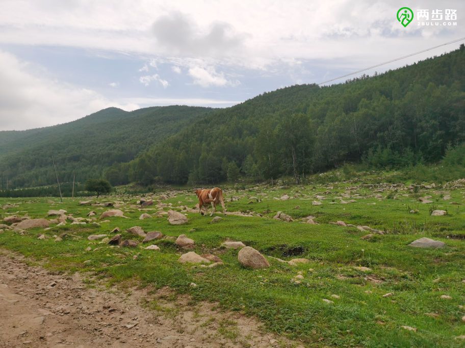 距离起点4.26km 当前海拔1435m 我们遇到了此行的第一头牛