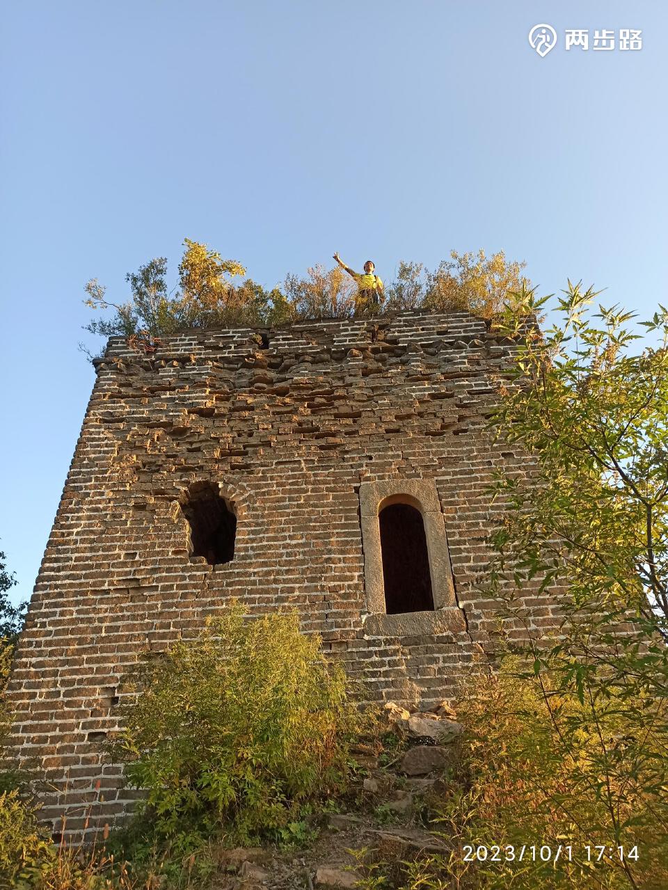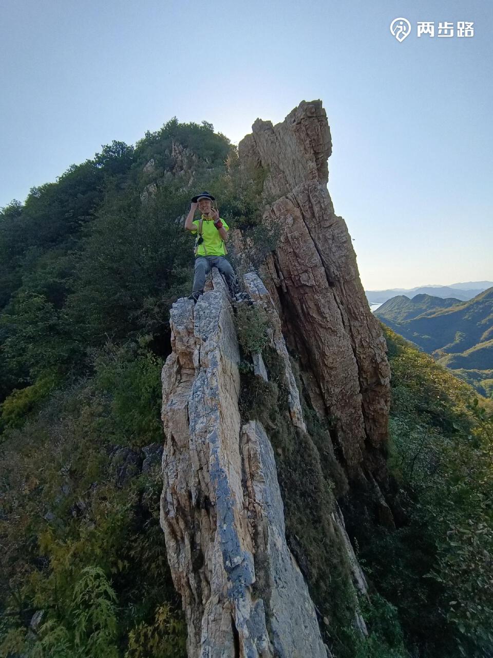 从西沟进山,登李家谷、椴木峪、喜峰口长城,爬黄石砬,俯瞰潘家口水库,下白台子,步行至桲罗台镇,步程18公里,爬升1000米。镇上晚餐,西红柿鸡蛋面¥15。