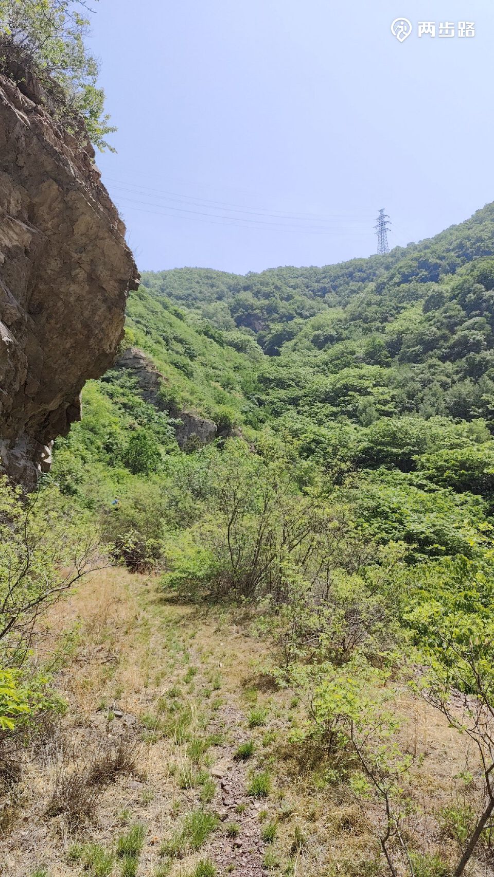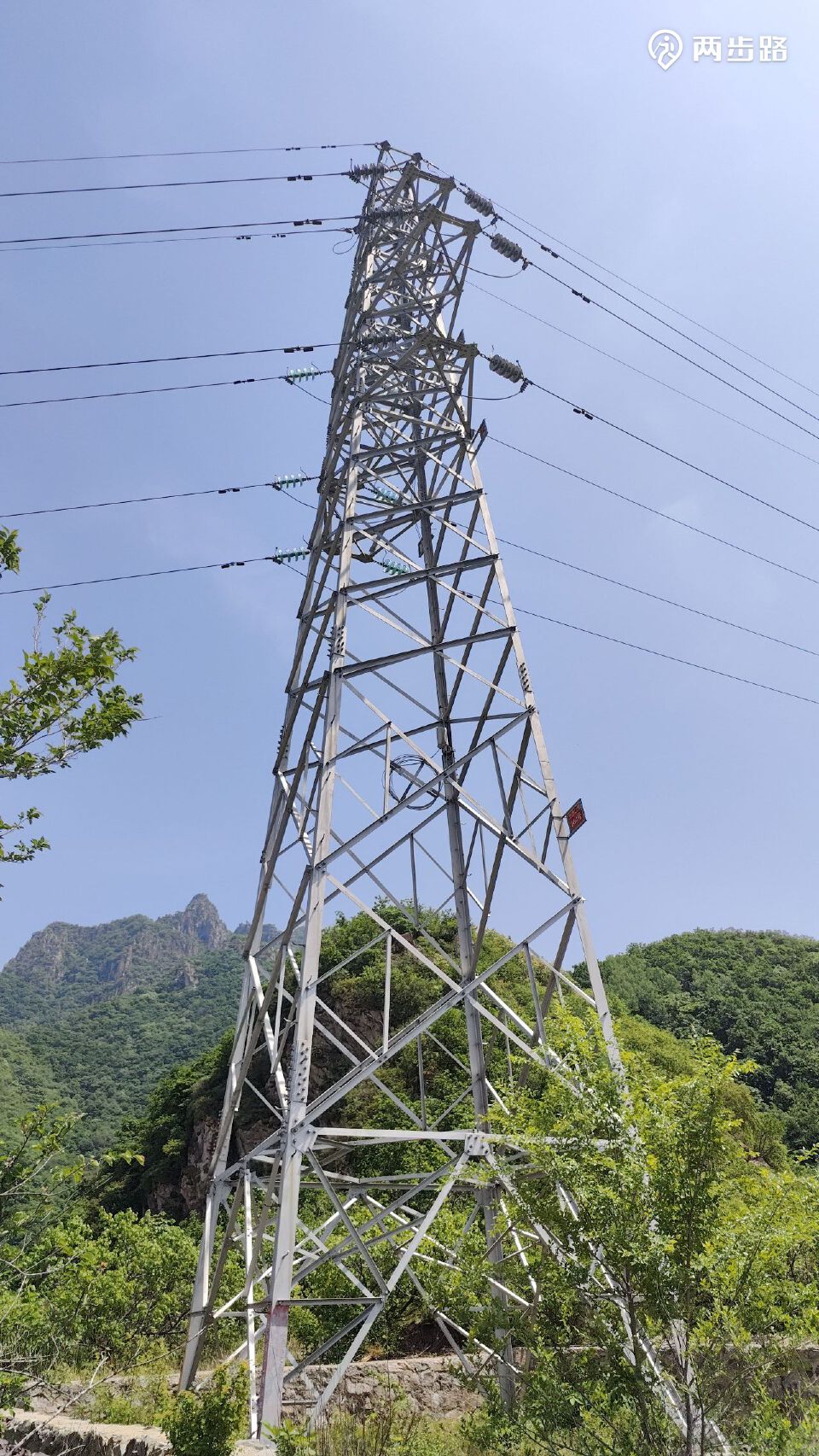 走了1.5千米上升不到80米,到线塔跟前了。一路走来基本都这个坡度,没有起伏。