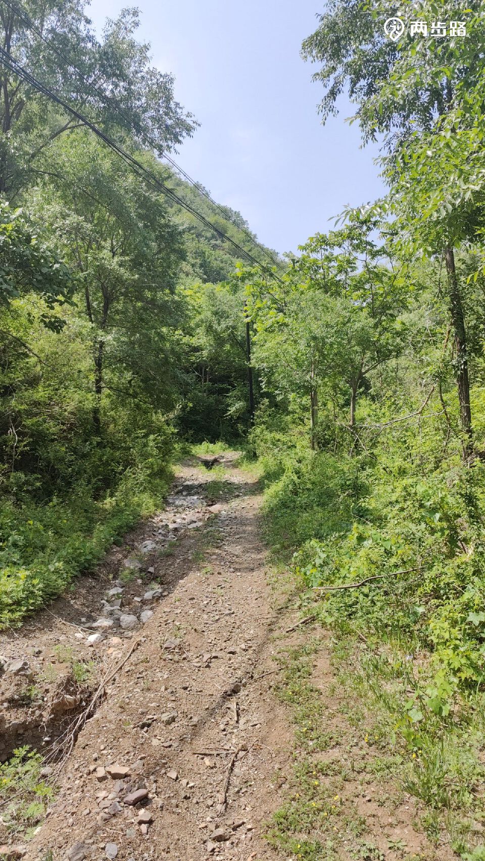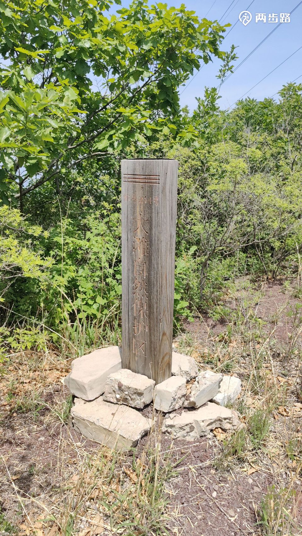 木质线杆,通讯线路?开始时就在河营路左右,盘山时不见了,后来临近垭口时又见到了,通往九里梁森林保护地的?