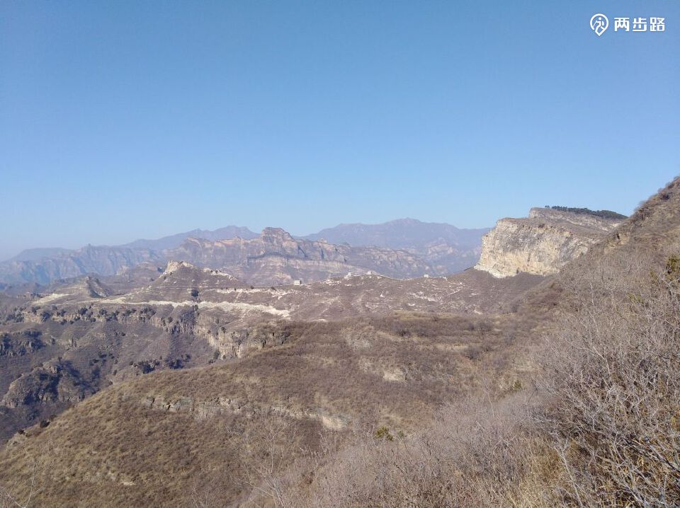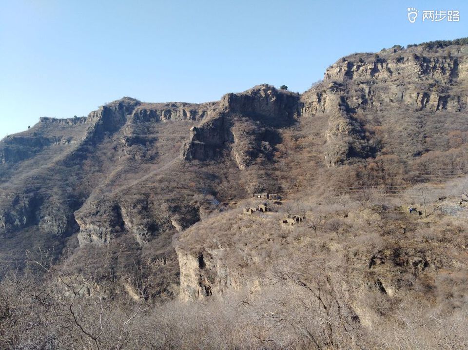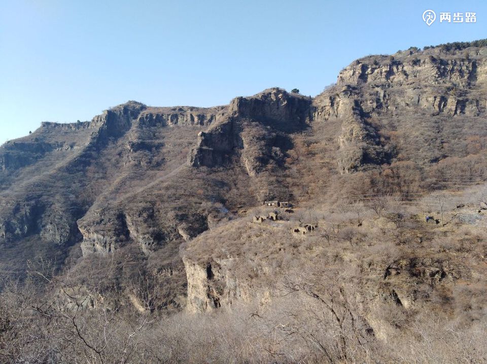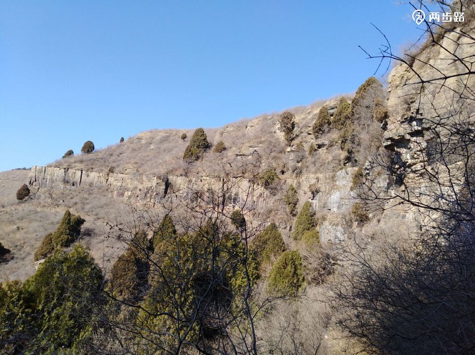 基本的走法是望着远处山崖上的房子,横切着走。全程路迹非常清晰,走的人少,局部枝条稍密,但远远达不到钻灌木的程度。