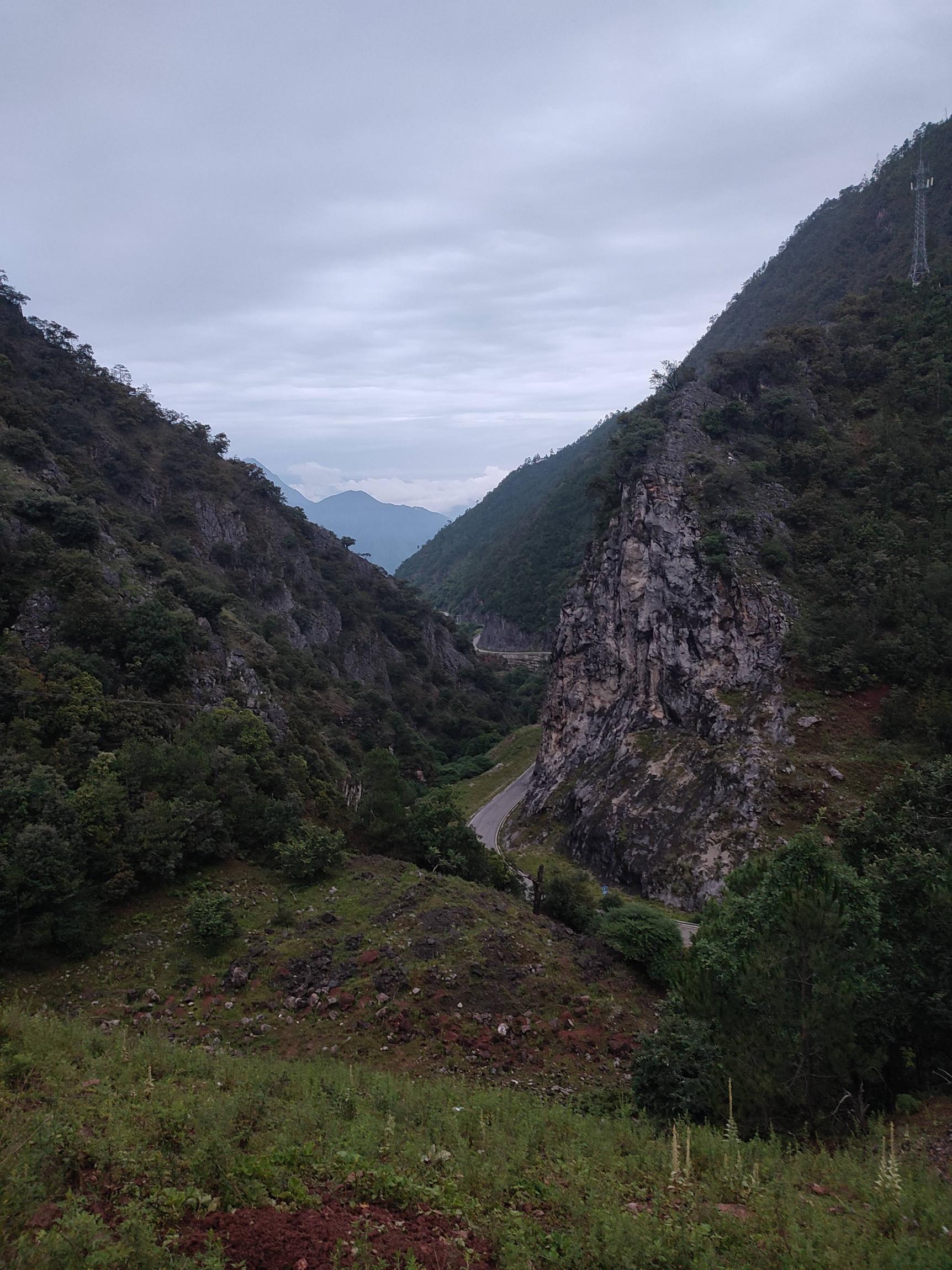 05:55鸣音镇起床洗漱,出了镇子一路向金沙江阿海水电站方向进发,下坡、下坡、还是下坡,摸黑走了近一个小时天也大亮了,海拔从鸣音镇的2700米下降到阿海水电站1500米。