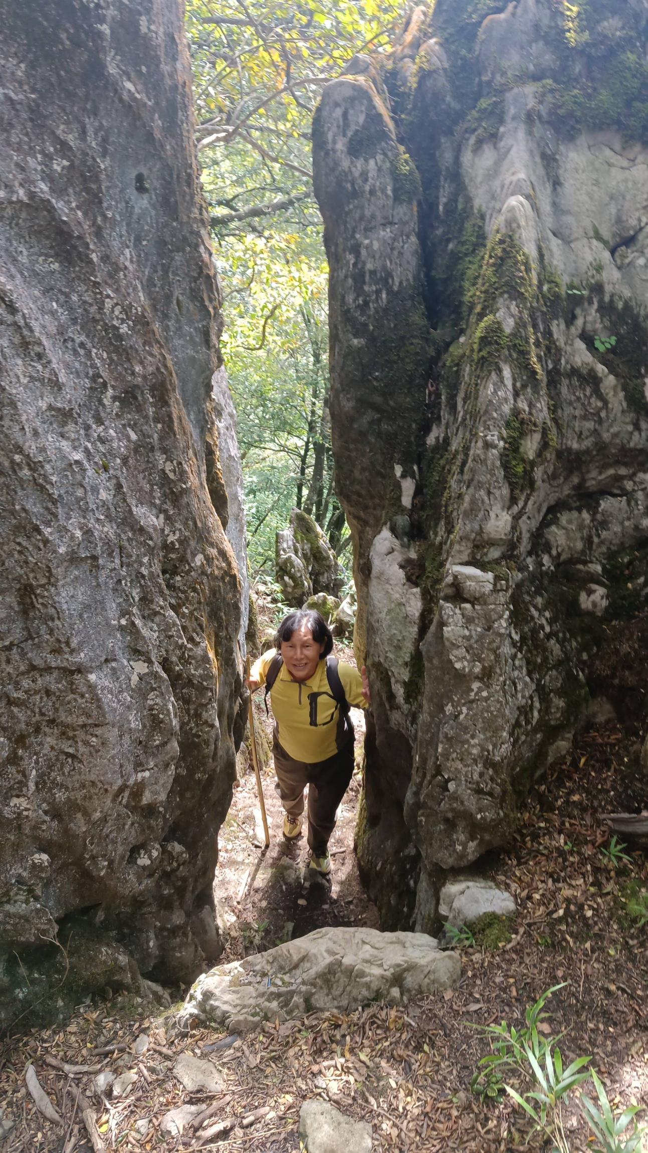 返回后右边陡升,从两山陡峭石缝隙中爬上去,穿越竹林后,来到石林洞,这里有一片石林。