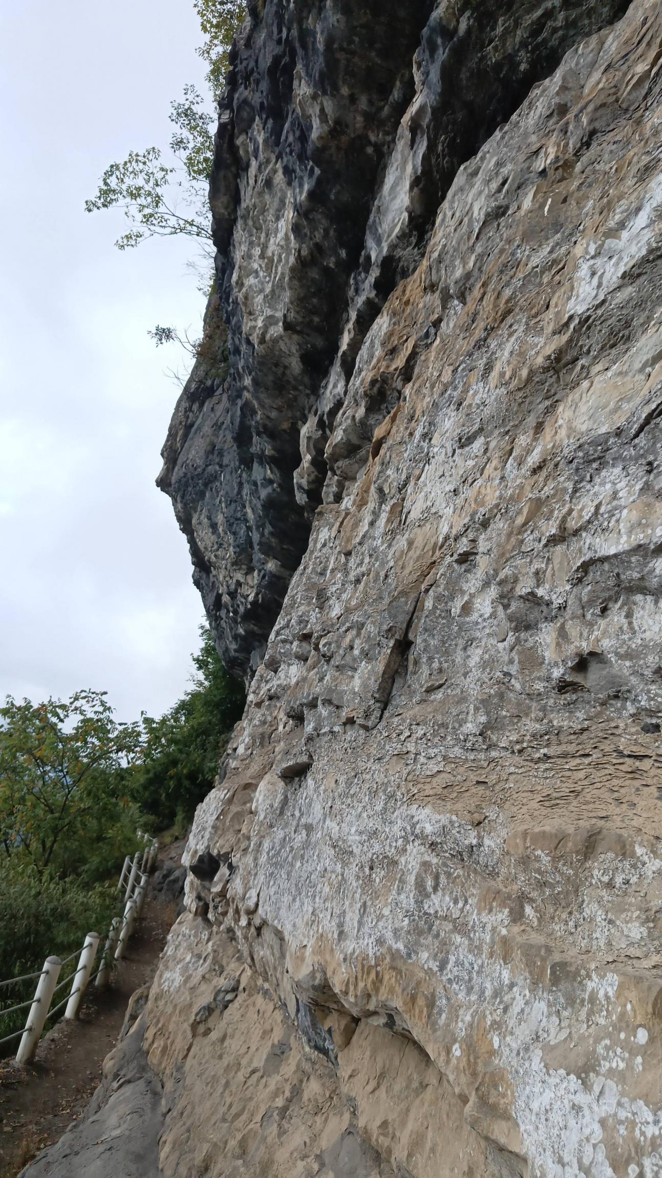 来到双生洞和天生桥,真乃大自然鬼斧神工,外面看一个洞,里面看二个洞,天生桥,大约10米长,宽1米多,比较薄,上面生长6棵树,好像随时可以跨掉。