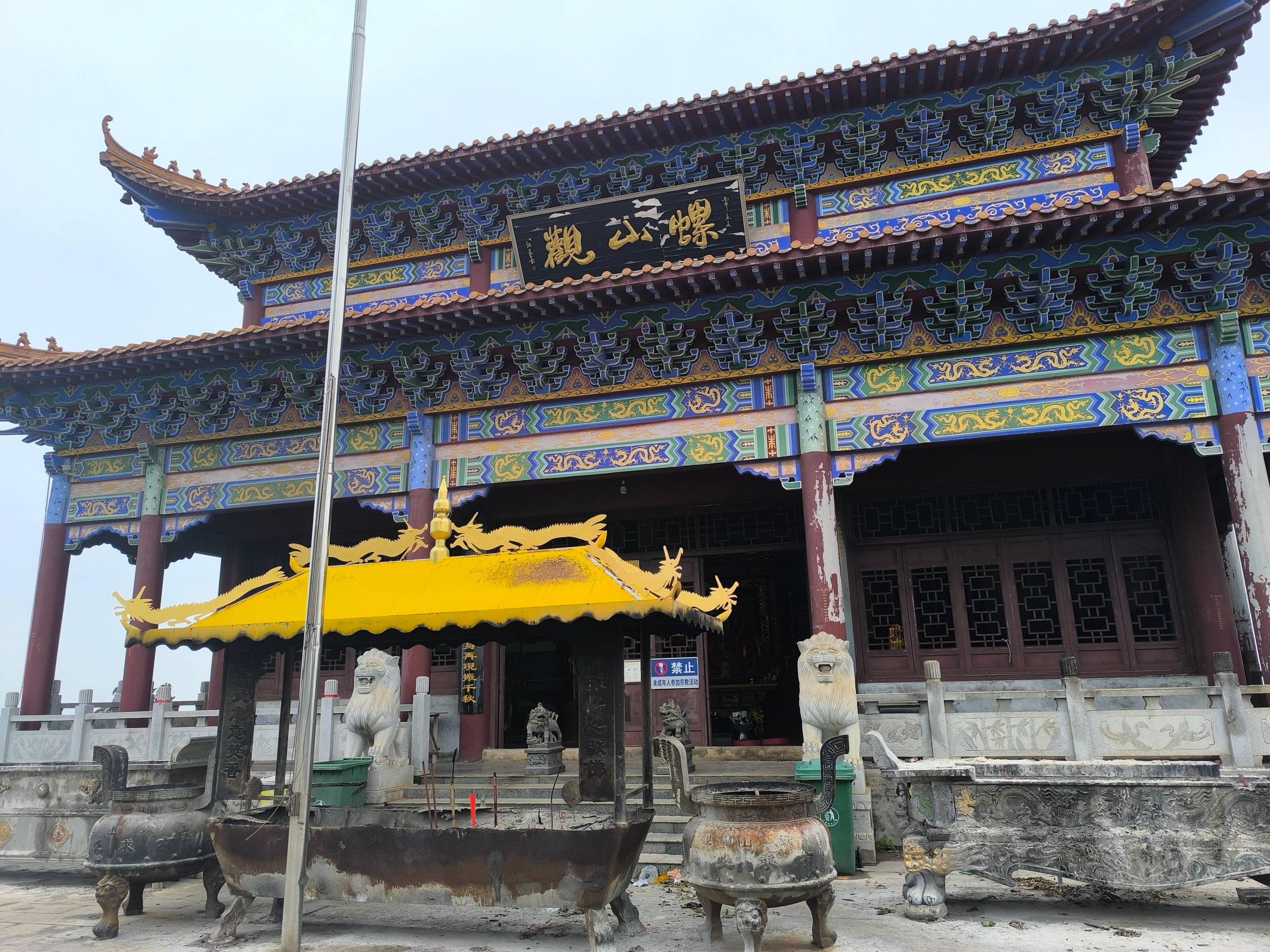 沿着大路一直前行到了团螺山,老庙正在拆旧建新,捐款最多的高达十七万之多。后面还有一座“螺山观”,是一座道观,相传为纪念南宋初年著名起义领袖王佐将军而立。