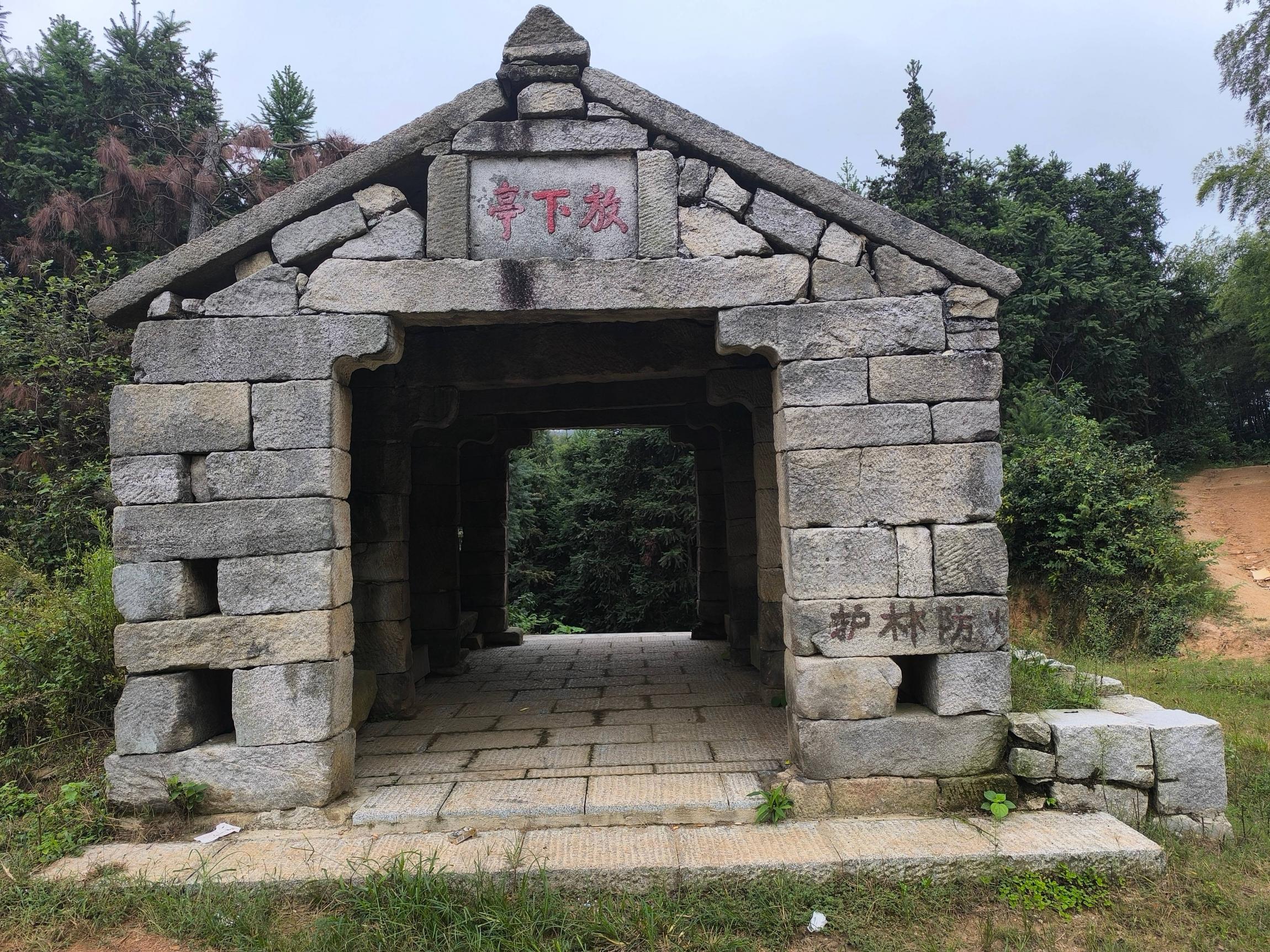 下一站是放下亭,文保碑是这么写的“放下亭位于汨罗市神鼎山镇玉池林场一山脊上,建于清乾隆三十三年,全麻石干砌砌筑,长5.28米,宽3.82米,高2.4米,人字形屋顶,东西墙麻石垒砌时多留方块形空间,南北门洞上阳刻有“放下亭”字,亭内部分石梁、石柱、垫石雕有纹饰。放下亭是旧时为方便过往经商、挑盐、赶考等行人临时休息、躲避风雨之用而建,是研究和考证万里茶路与茶亭文化的重要物证。”是不是和高华亭一样,都是茶马古道的一部分呢?
