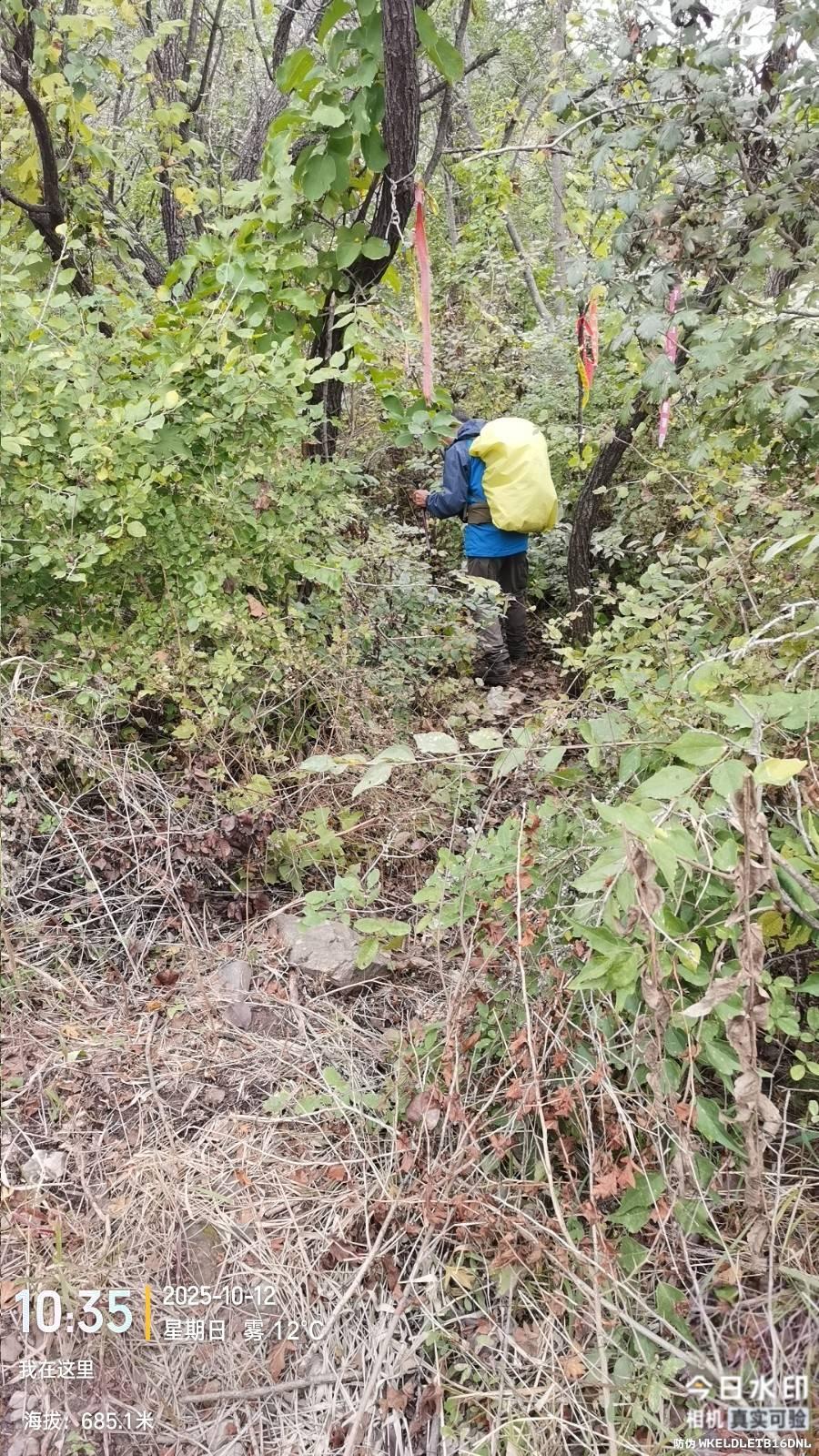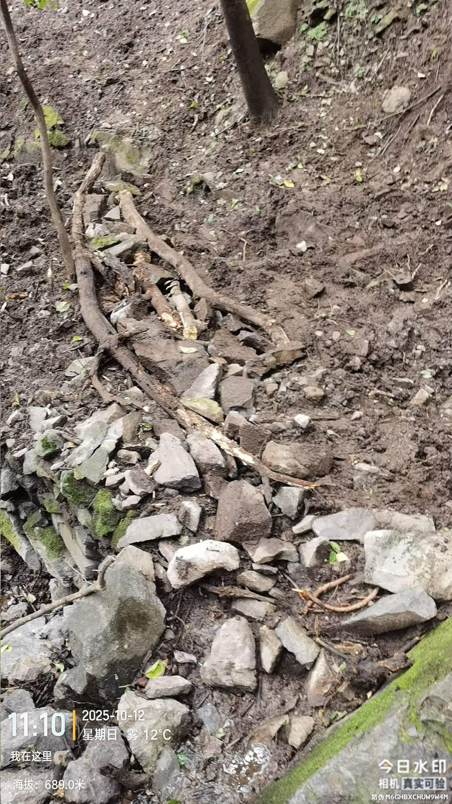10月12日是个阴天。凉水背打水人仍然络绎不绝。过了凉水背的第一溪流水挺丰满,鹰哥看不过去了,滚石头当做踏脚石 ,这块石头少说也得100斤,石头入水了,鹰哥右脚没收住也入水了,要是这样也好说,惯性定律是鹰哥越过石头侧翻在水里,关键是背着包,肚皮朝上,当时我还现场全程录像呢,我都不知道咋关的手机,右手用力拽着背包带子把鹰哥从水里捞出来了。事后验证裤子和背心湿了,鞋进水少许,包问题不大, 未反馈外伤。