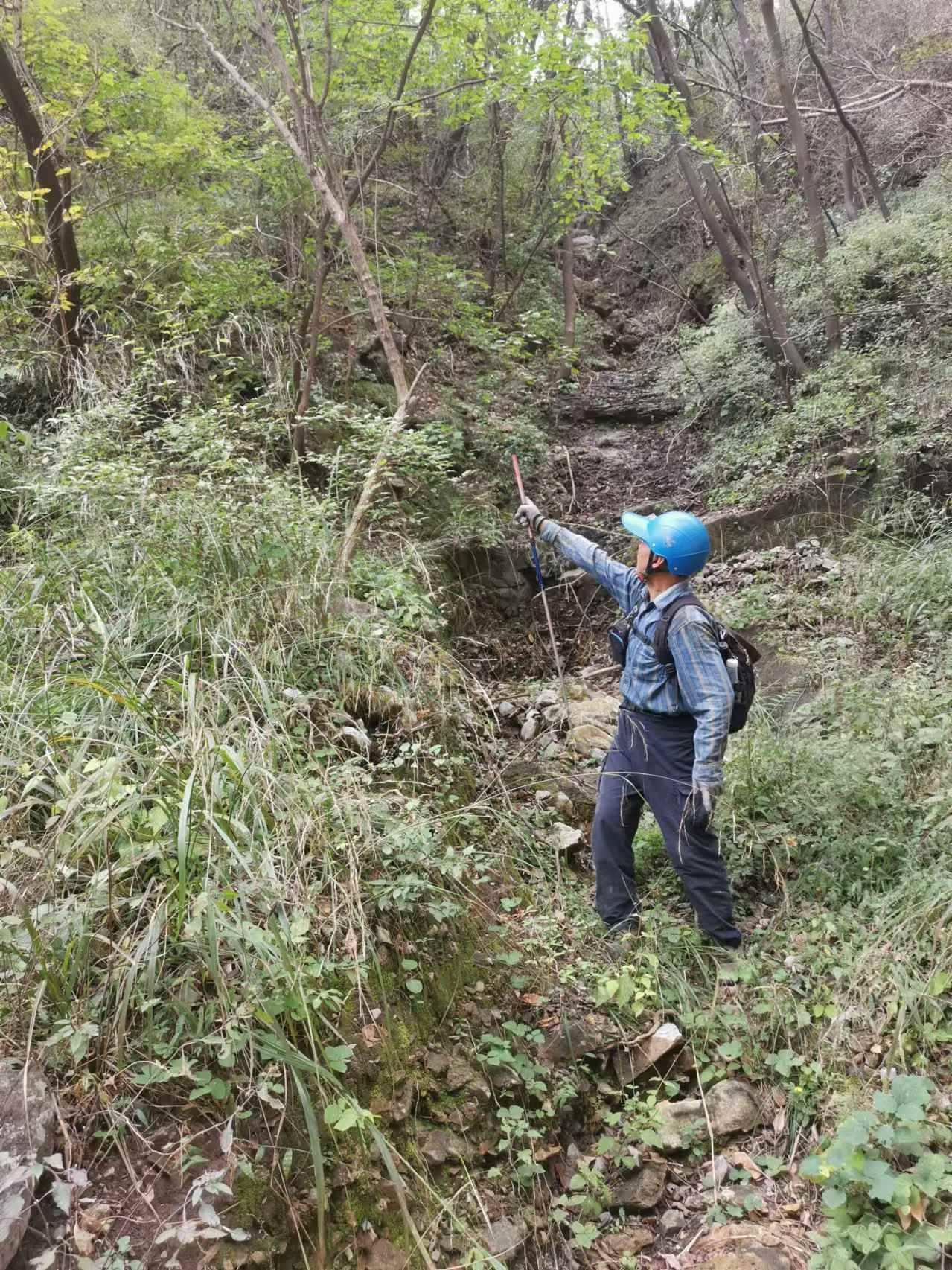 今天有神秘甲陪同,先走碎石路到梨树沟北,走岔沟进入酒东梁东沟,沟里只有一个高约4米的崖,徒手可上,要是下可能困难。神秘甲想把沟走到头,陡升后午餐,再走就上大梁崖下了,于是右转朝东北走,遇到两棵侧柏树,但没发现建筑物。林间偶有梯田,没见到生活垃圾。之后垭口朝北下沟,和半年前蜉蝣走过轨迹重合,但地上一点路迹都没有。东侧有个10米岩石陡坡要下必须用绳子,虽说带着绳子,我原则是有绳子不为绳子,能绕则绕,对别人循迹走有好处。于是和旧轨迹麻花状交缠行走,终于无悬念到沟底。