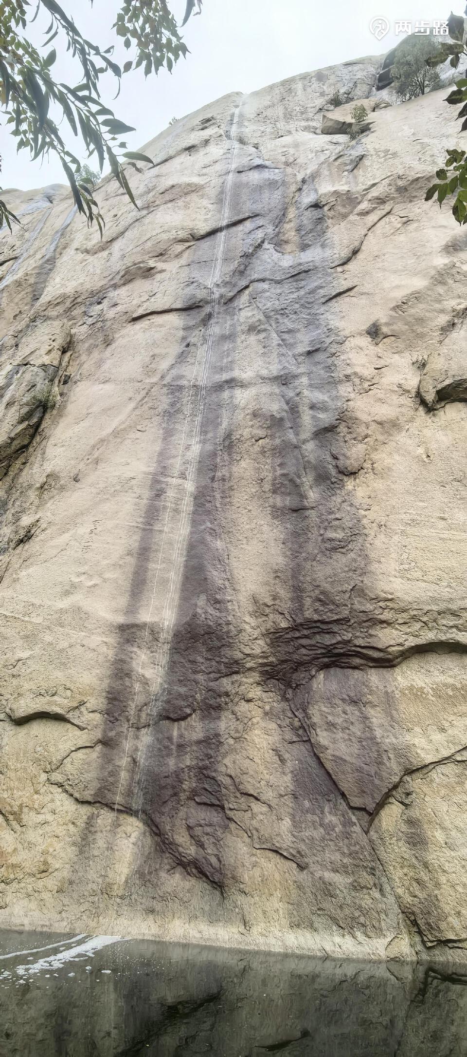 长寿山景区工作人员冒大雨骑电动三轮赶到我们前面,锁上了铁门,又看着我们绕过铁门、走进石门。两侧巨型岩壁夹岸而立,气势磅礴,诸多飞湍流瀑垂天而下,蔚为壮观,不愧为国家地质公园。