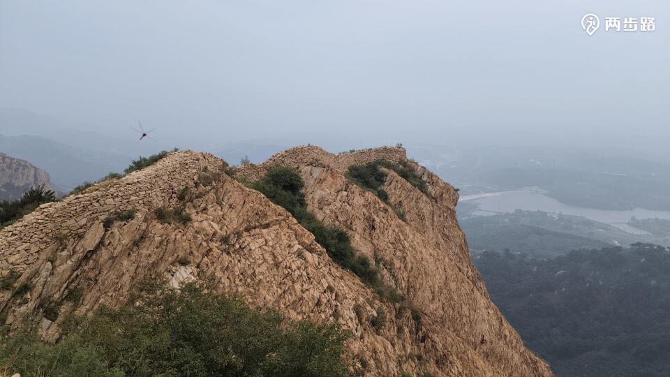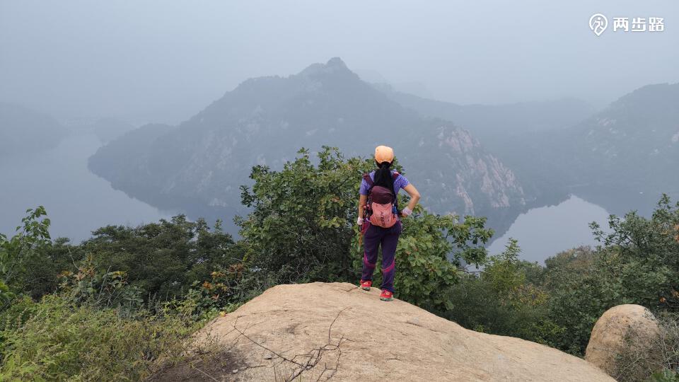 海雾中探身俯瞰石河水库。石河,古名渝水,其源有二:东源出自马尾岭下,至山神庙会马头岭下诸水,入城子峪,至驻操营西,绕青龙山,至猴儿崖下与西源之水合,入义院口,经石门寨、蟠桃峪,又南流东转为四道河,又南过围春山西为三道河,又南流至洞山下为二道河,又西南出首山下为头道河,南流经回马寨,经山海关城西,南流入于海。《永平府志》说,石河“其石丛积,褰裳可涉,秋潦急涨,险不可厉矣。”大坝合龙后,水道枒杈盘曲,静流深沉,时而狭窄无路,若行三峡,时而豁然开朗,平步汪洋。如此仙景,可惜未能免俗,围作燕塞湖景区,自称“北国小三峡”“京郊小桂林”。