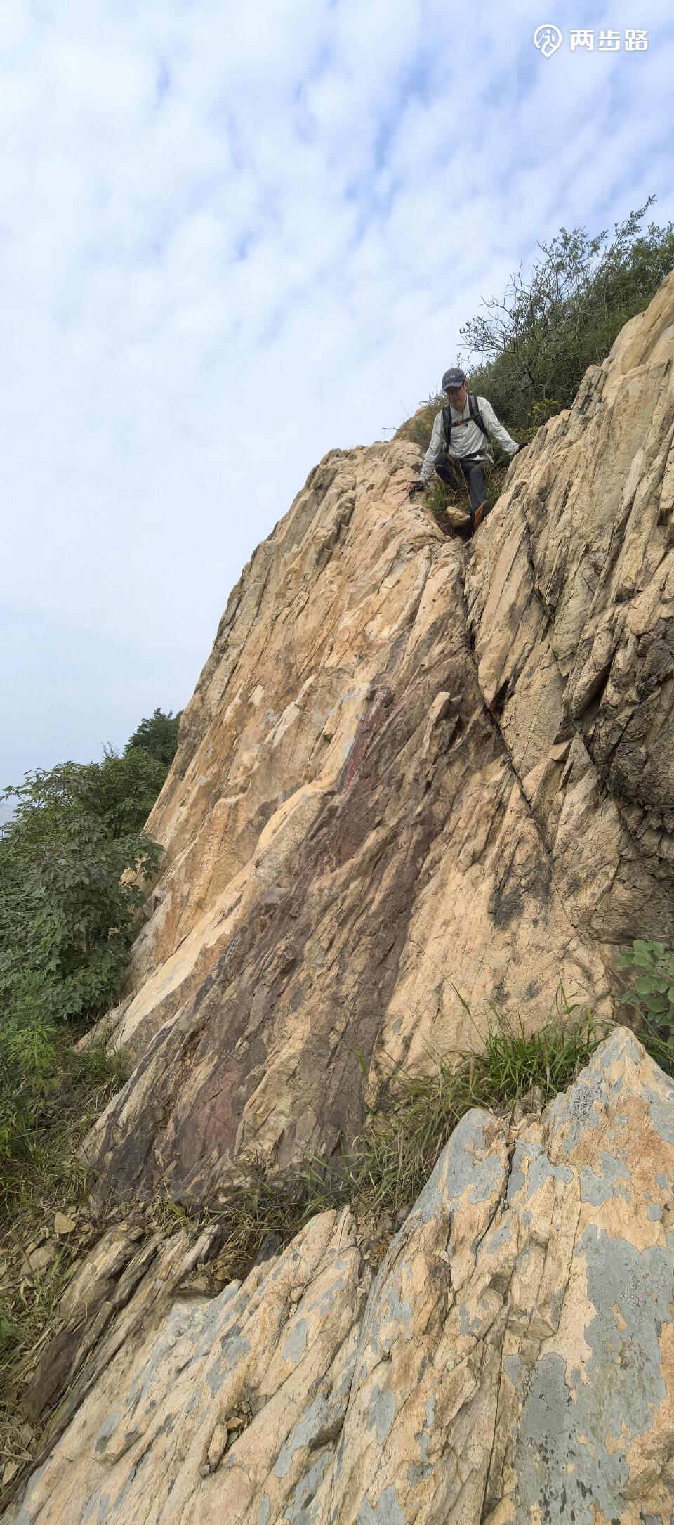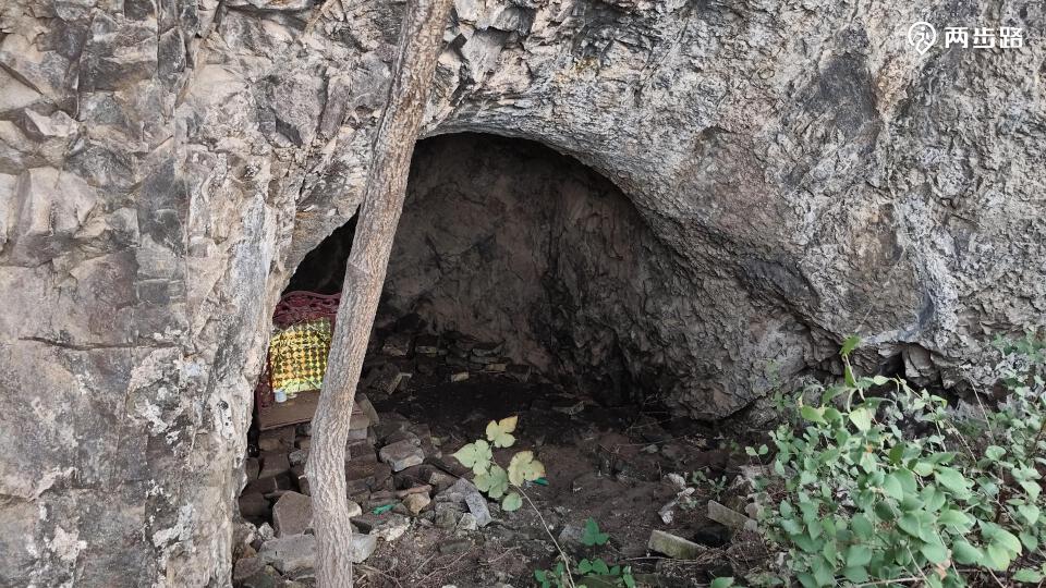 山脊连贯,不觉来到狼窝山。《临榆县志》记,“距城北十里,上有朝阳洞,洞中有水,可供一人一日之用。”既然追不上前队,便从垭口回探崖下,披荆斩棘,终于找到洞口遗址,而石碑已漫漶难读了。上古之世,洞为庇护所,中古之世,洞为修真府,而今之世,沦为抛荒地,不亦宜乎。