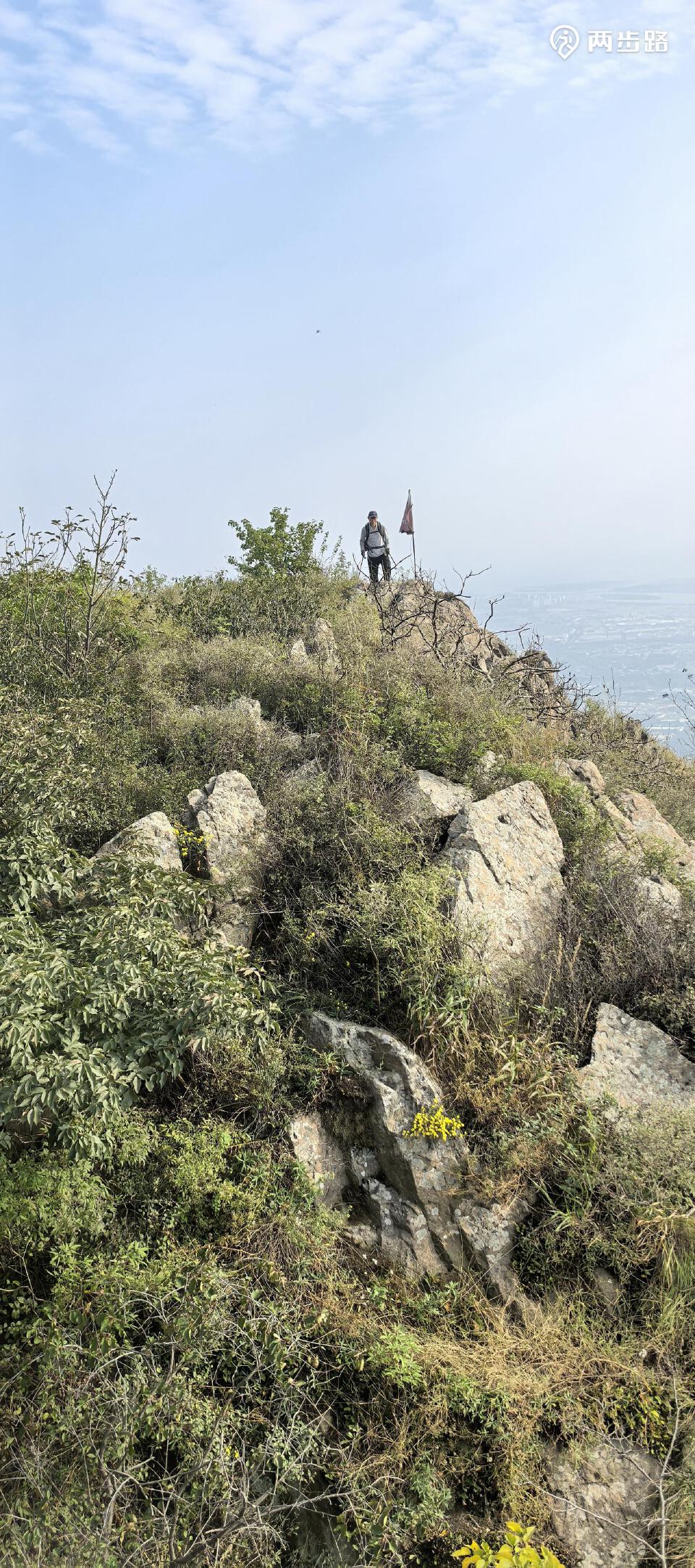 返回轨迹,前往角山。《山海关志》载,“角山,脉自居庸、古北、喜峰诸山,东迤逶延亘千余里。国朝俱鳞次设关隘,障朵颜诸夷部,至是耸峙面海而长城枕之,控畿甸,界辽沈,郡之镇山也。距城北六里,双峰争向,宛如角立,因名。兹山之北,直抵沙漠,层峦弥望,邈乎不可穷矣。”由此可知,山分两角,东角为主峰大平顶,西角为栖贤寺。