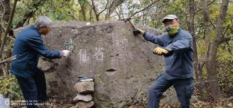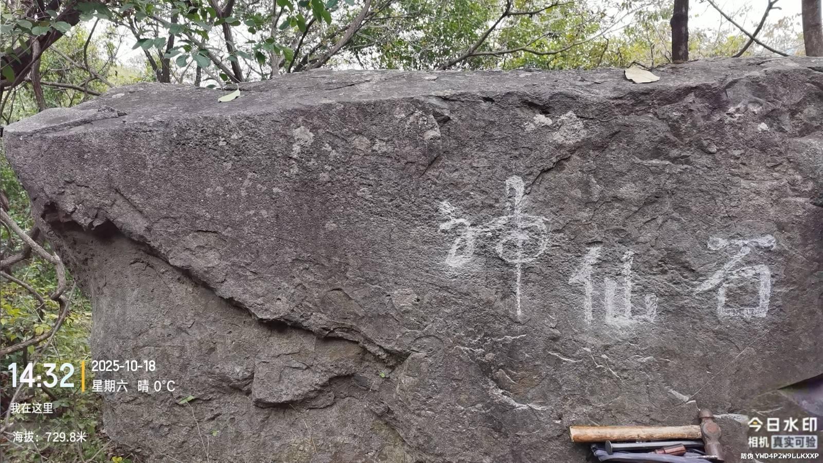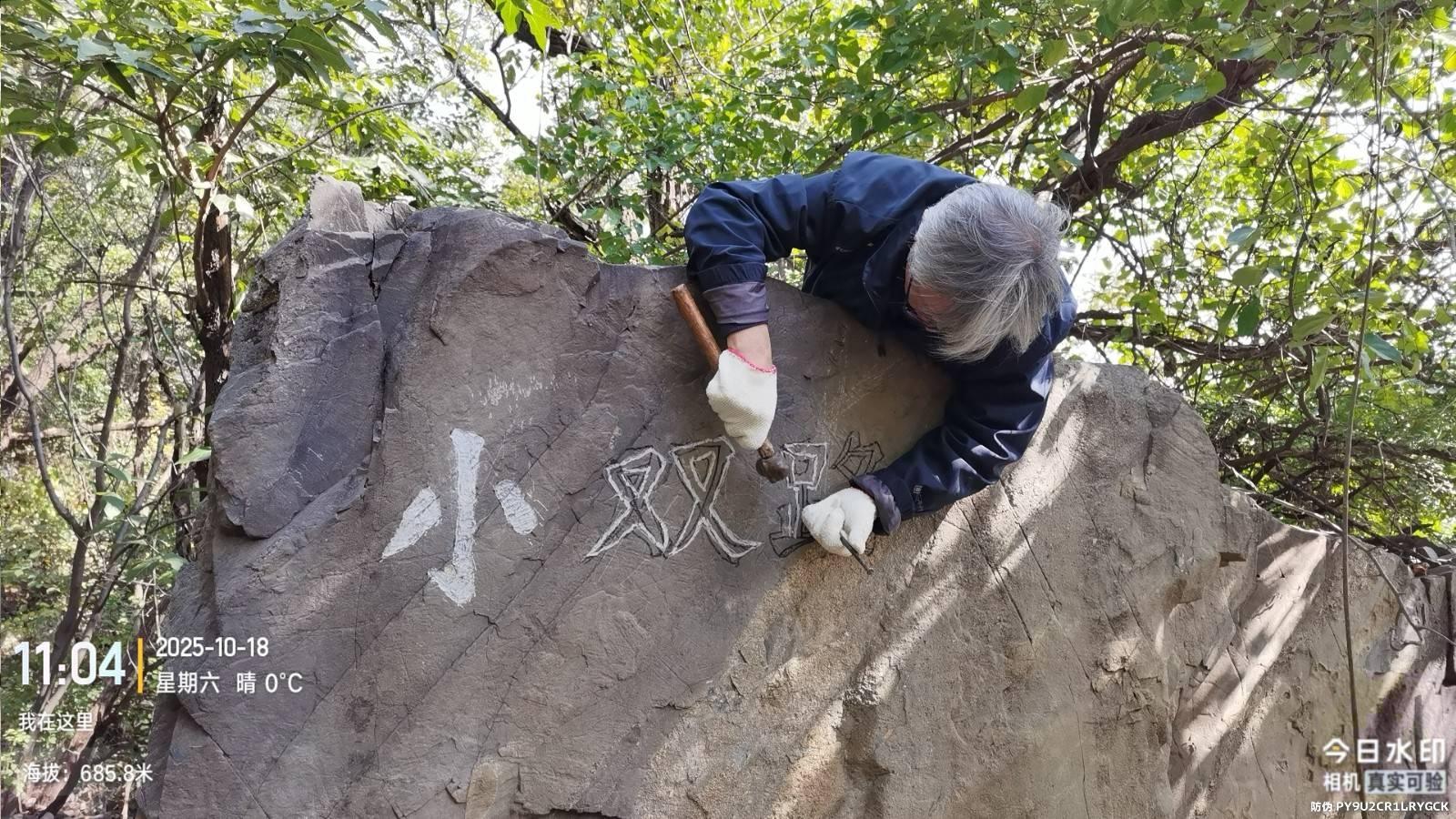 刻神仙石有点经验了,但无奈此石为沉积岩砾石内夹火山岩,巨硬,凿子和石头撞击可以打出火星子。此地用时2个小时。