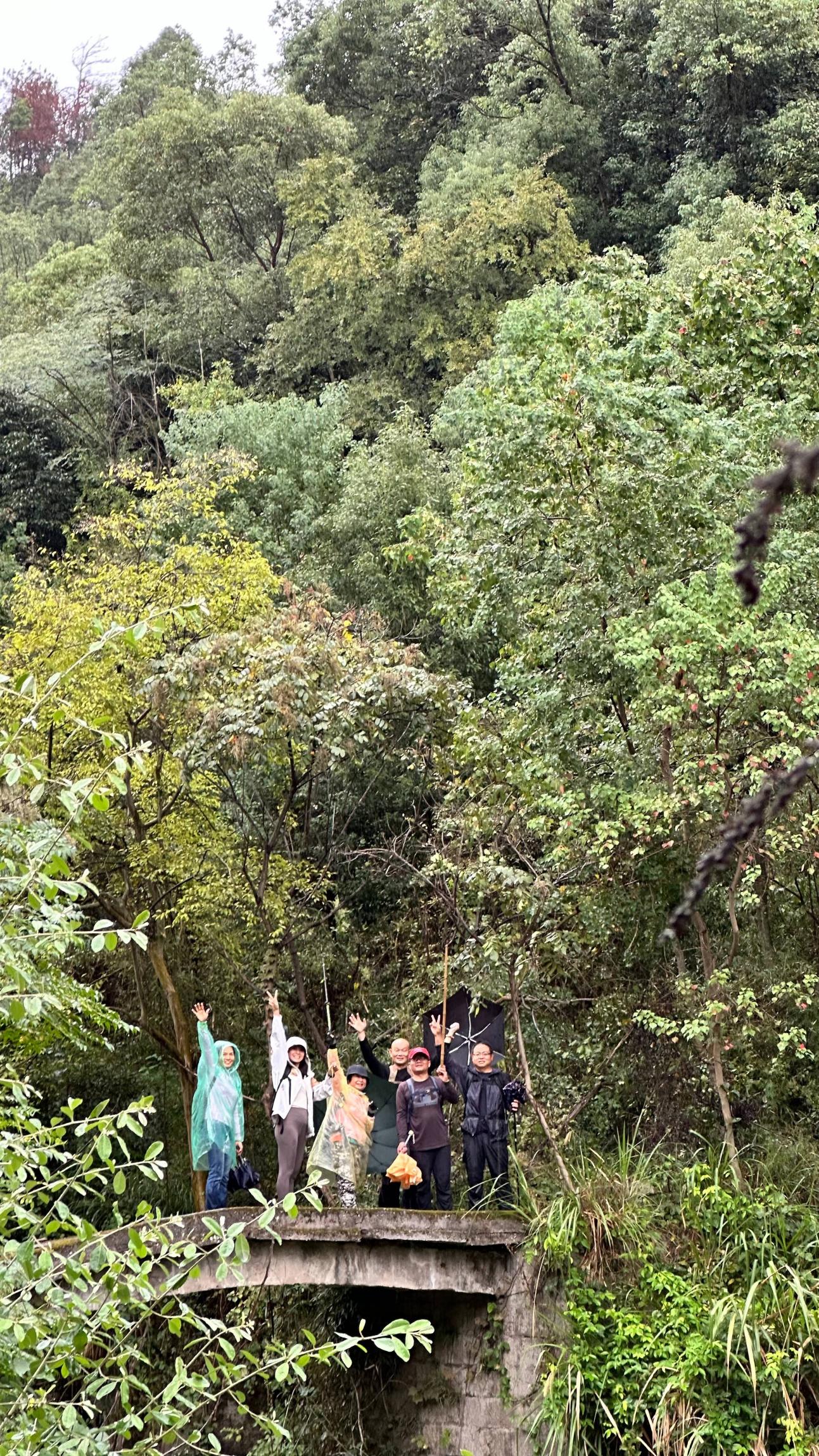 在此之前,风景独好,有点像石柱峰的美人谷,起伏不大,溪流相伴,左转右转,以致云端漫步、静水、梅三人没有到感恩寺遗址,没有一起过风雨桥,没有一起路餐打卡秘境,就只剩下七位探寻找路,感受云开雾散,风起云涌,裤脚干了再湿,湿透了再干,被清新湿润的空气洗肺,被狂风怒吼,被溪水冲刷。