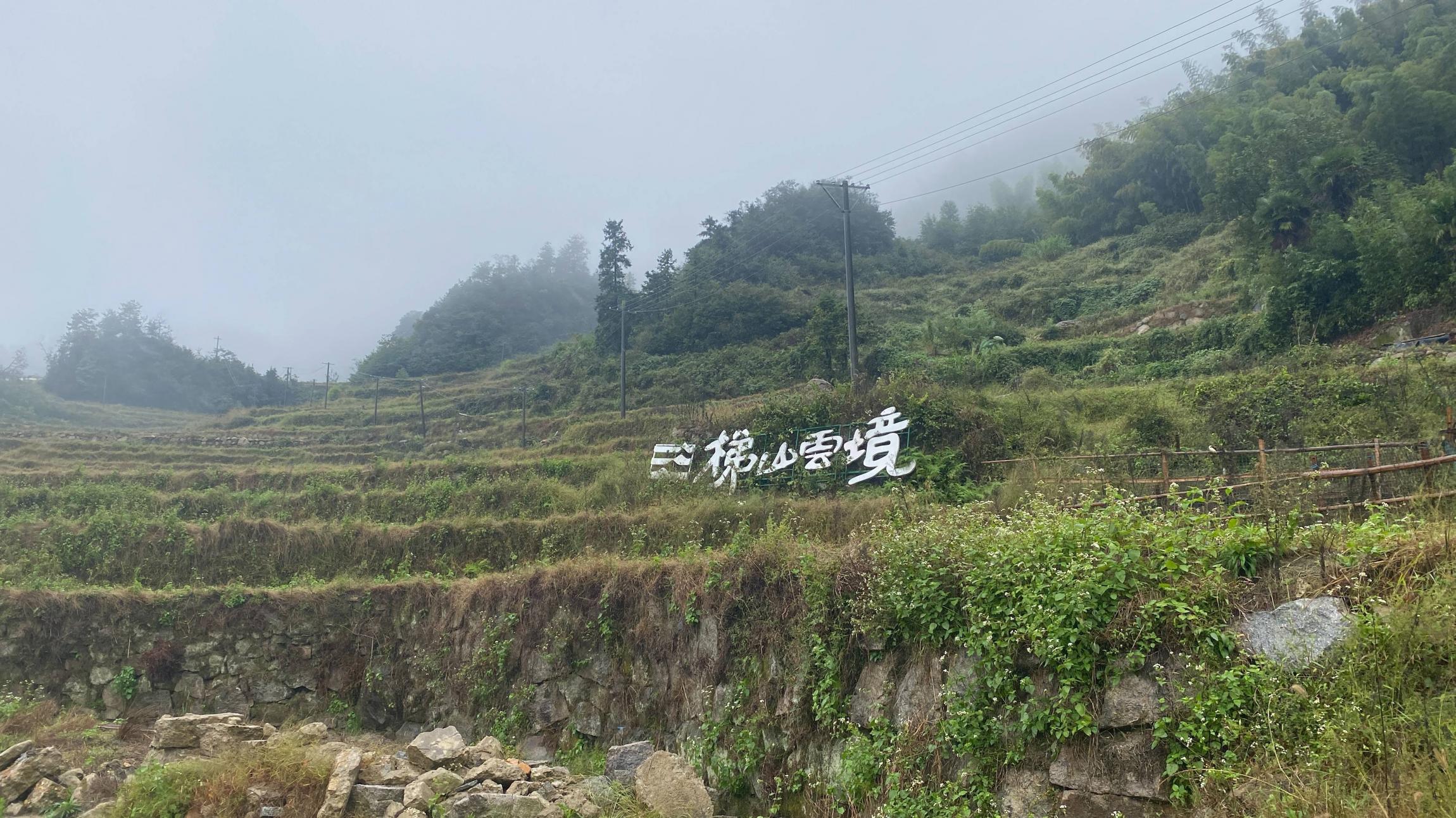 到达此处,是意外的惊喜,风雨无阻,计划之外的秘境。拍照打卡,帽檐吹翻,雨伞反骨,让人在风雨中感受清凉。但大家见此美景,热情高涨,说着这不就是玉池峰吗?下次来这里露营,备上火锅,畅饮聊天。这些随风而过,走到山顶平地,无大路可走了,小路可上山,可右行,可钻林子,雨中不冒险,那就撤退,再过一遍风雨飘摇中的梯田云境,不一样的美,从上往下才有卷书散开,让人穿梭迷雾朦胧之仙境,赏古匾之文采。“左辅 文曲 右弼”难道任弼时的名字跟“右弼”有关吗?还是刚好凑巧,有一收藏界大佬捐出无价真品,悬挂在此,共享殊荣!