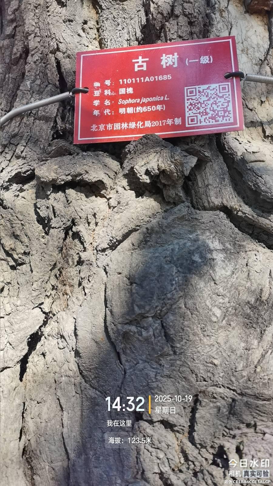 到班各庄参观大槐树,红牌子2017年标注是650年,村民说不低于800年,我看成形情况判断应该不低于1000年。