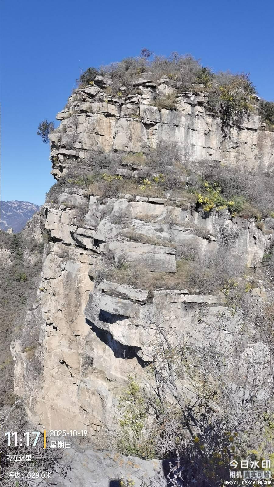 东班各庄北2.7公里处的崖脊这是时隔半年再次光临此崖。这次不同是有爬崖研究者法兰。最后专家判断从南往北徒手上去概率渺茫。从北往南用绳子保护下降概率七成。
