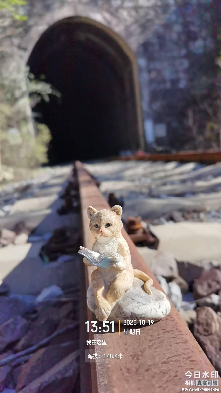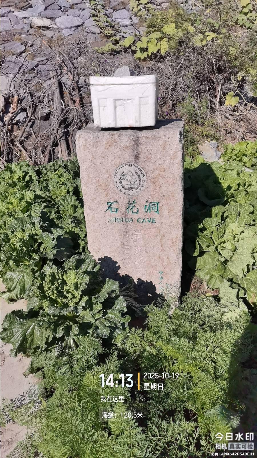 回撤半公里处朝西下降到铁路隧道口处,13分钟走完了768米隧道。隧道口铁路桥南侧护坡下长着一个石花洞国家级景区界碑,不知道为何在这里,这里距离景区不少于5公里。问村民也不清楚。