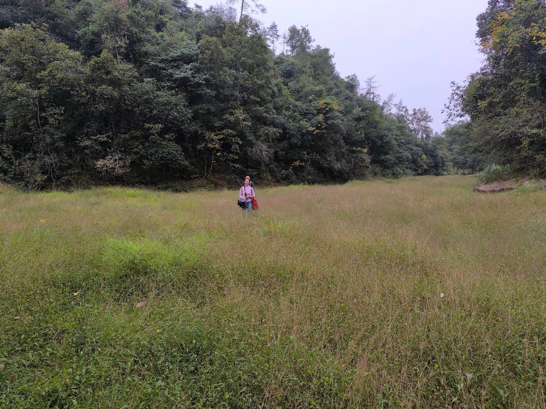 沈家大屋目前正在修缮,匆匆参观后就继续出发。为了抄近路,沿着一条隐约的小径误入一片藏在山谷里的世外桃源。齐腰高的杂草织成一片,其间缀满了星星点点的小花。草叶间还藏着蕨类和爬藤,缠缠绕绕地,踩上去软绵绵似云朵。杂草疯长,野花乱开,树林密不透风,没有人工修剪的痕迹,没有喧闹的人声,只有大自然最本真的模样。这哪里是抄近路的意外?这分明是对探访者的馈赠。
