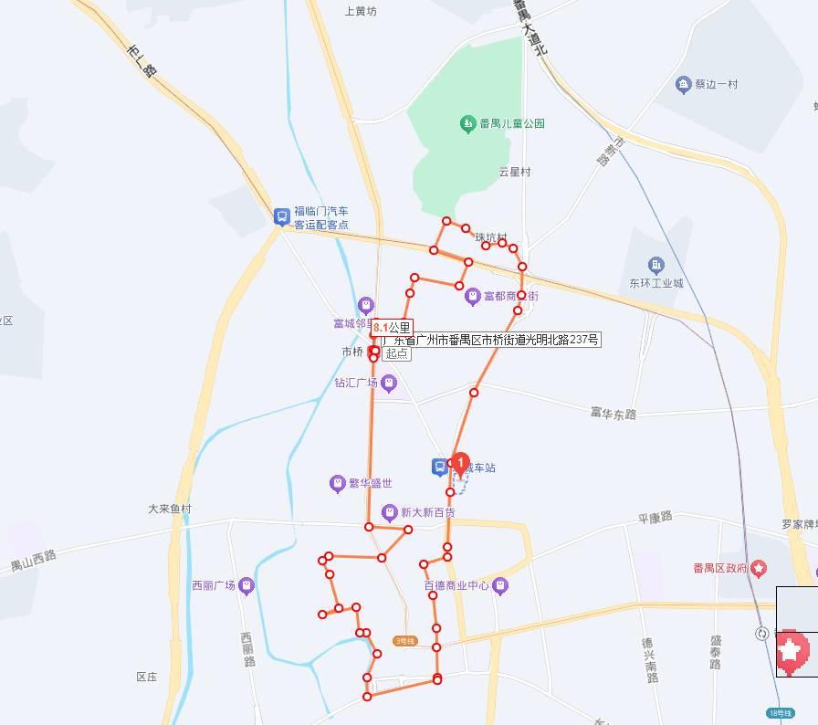 这是实际路线,红圈加上了最上面的绿色公园。