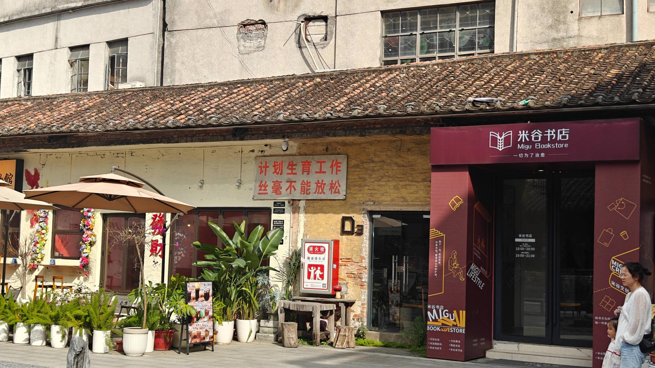 进了书店,就进入了一个工厂改造区。这个计划生育的牌牌又是很讽刺。