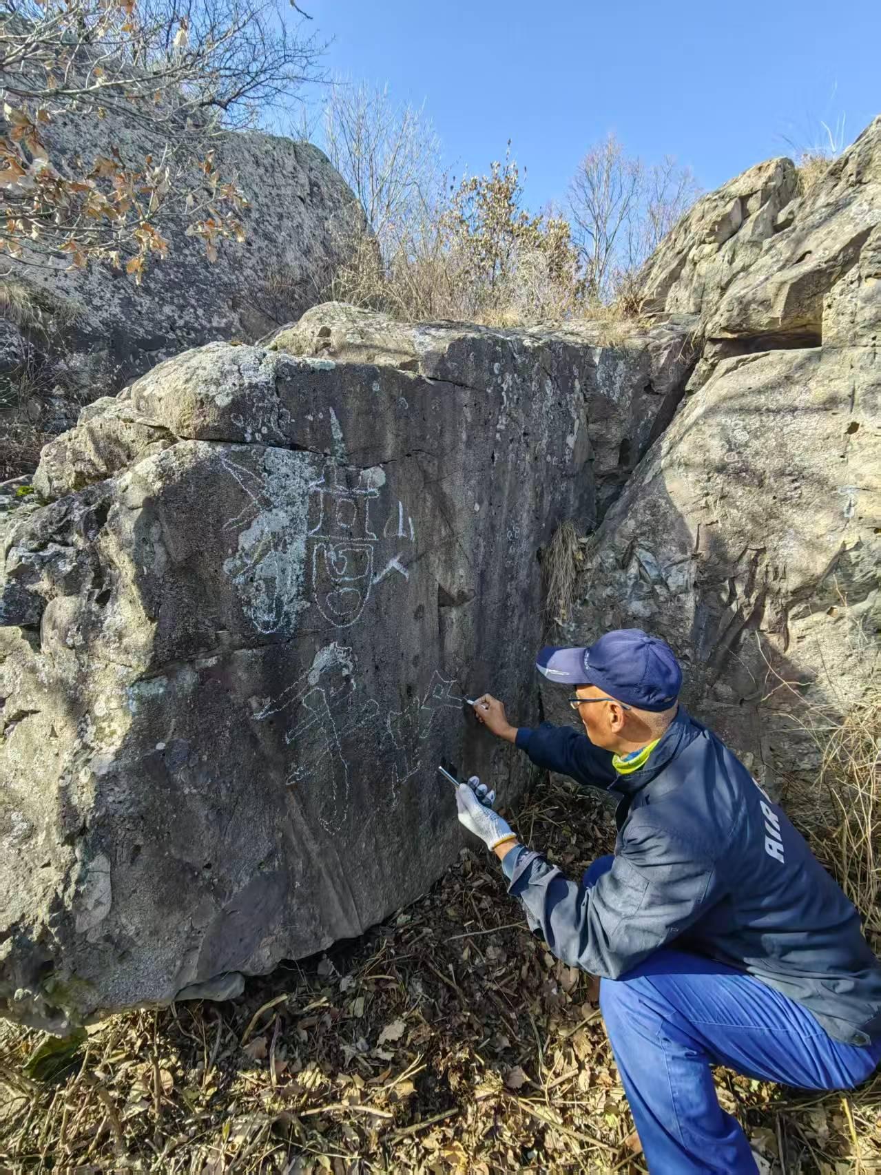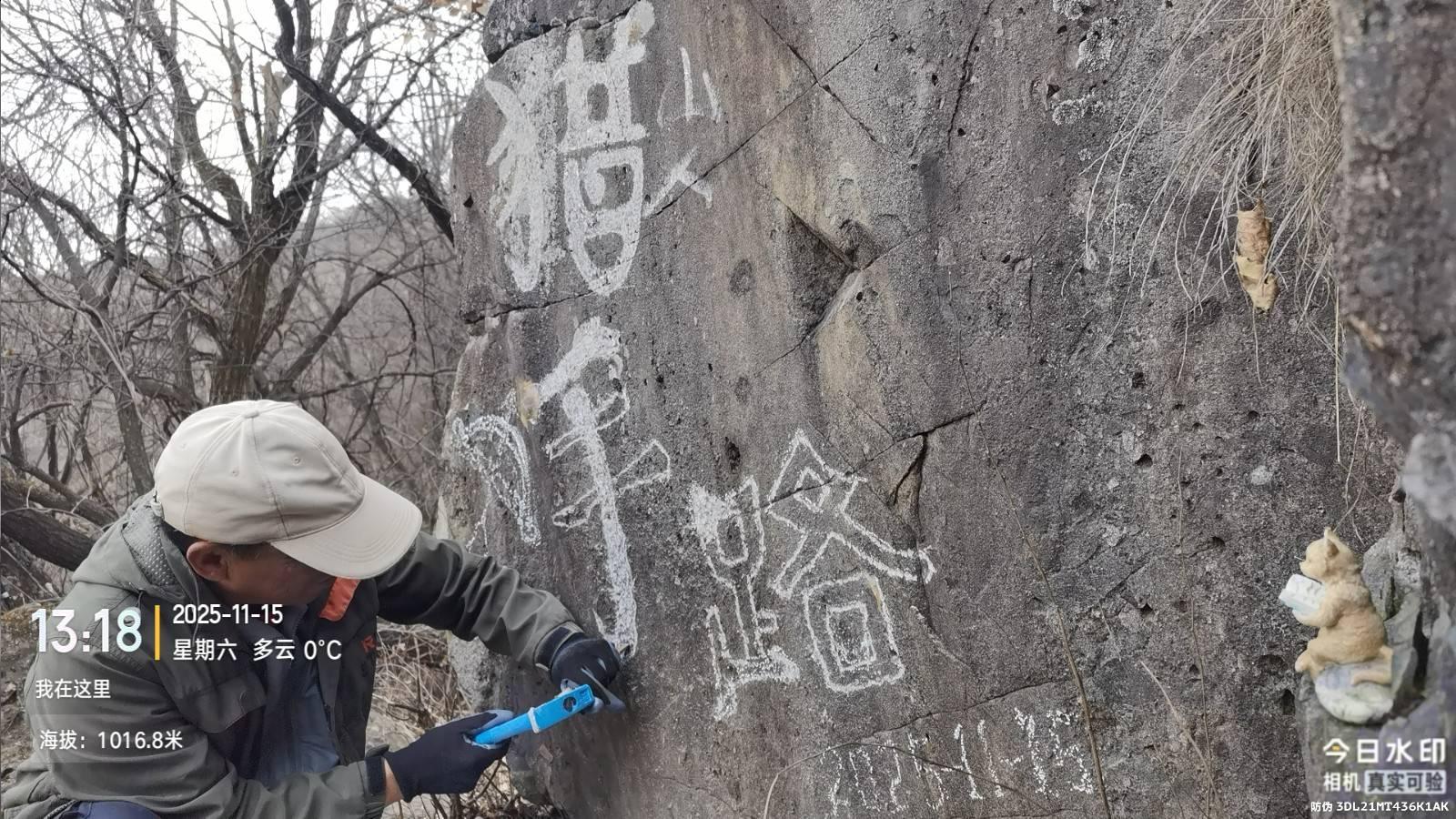 10:58带到达鹰哥指定石头处开始施工。中间有两位教授加入刻字,,下午一个小女孩参加了部分描红。