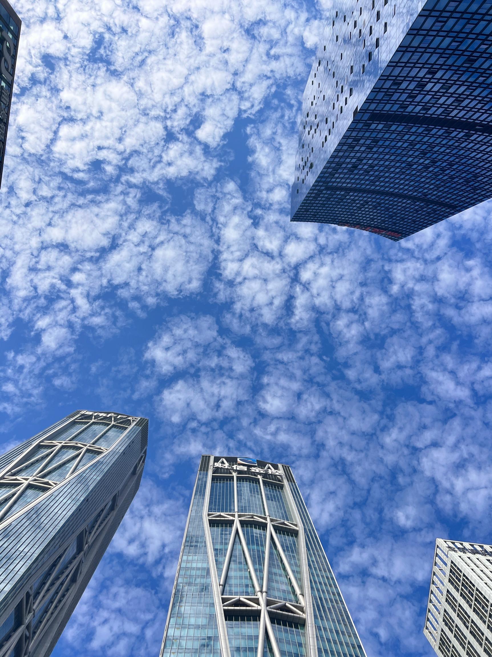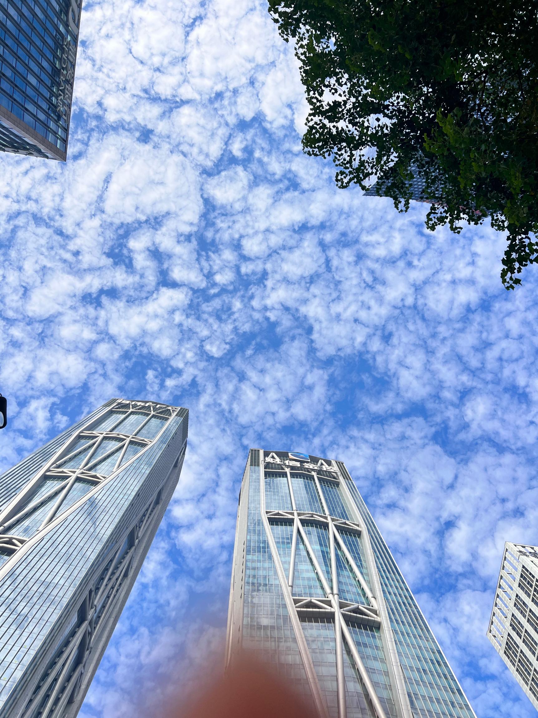 抬头撞见城市的天际线,玻璃幕墙刺破流云,钢筋铁骨的建筑在澄澈的蓝天下勾勒出凌厉又张扬的轮廓,这是都市独有的向上生长的力量。