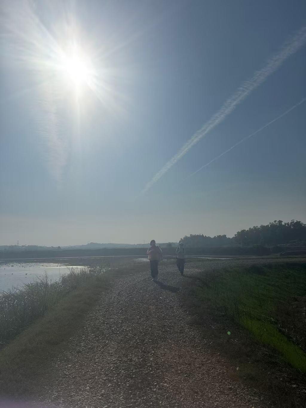 暖阳把前路铺得明亮,碎石小径向远方延伸,风里裹着田野的清新,和同行的人一起漫步,连时光都变得慢悠悠的,这大概就是乡村漫步最惬意的模样。