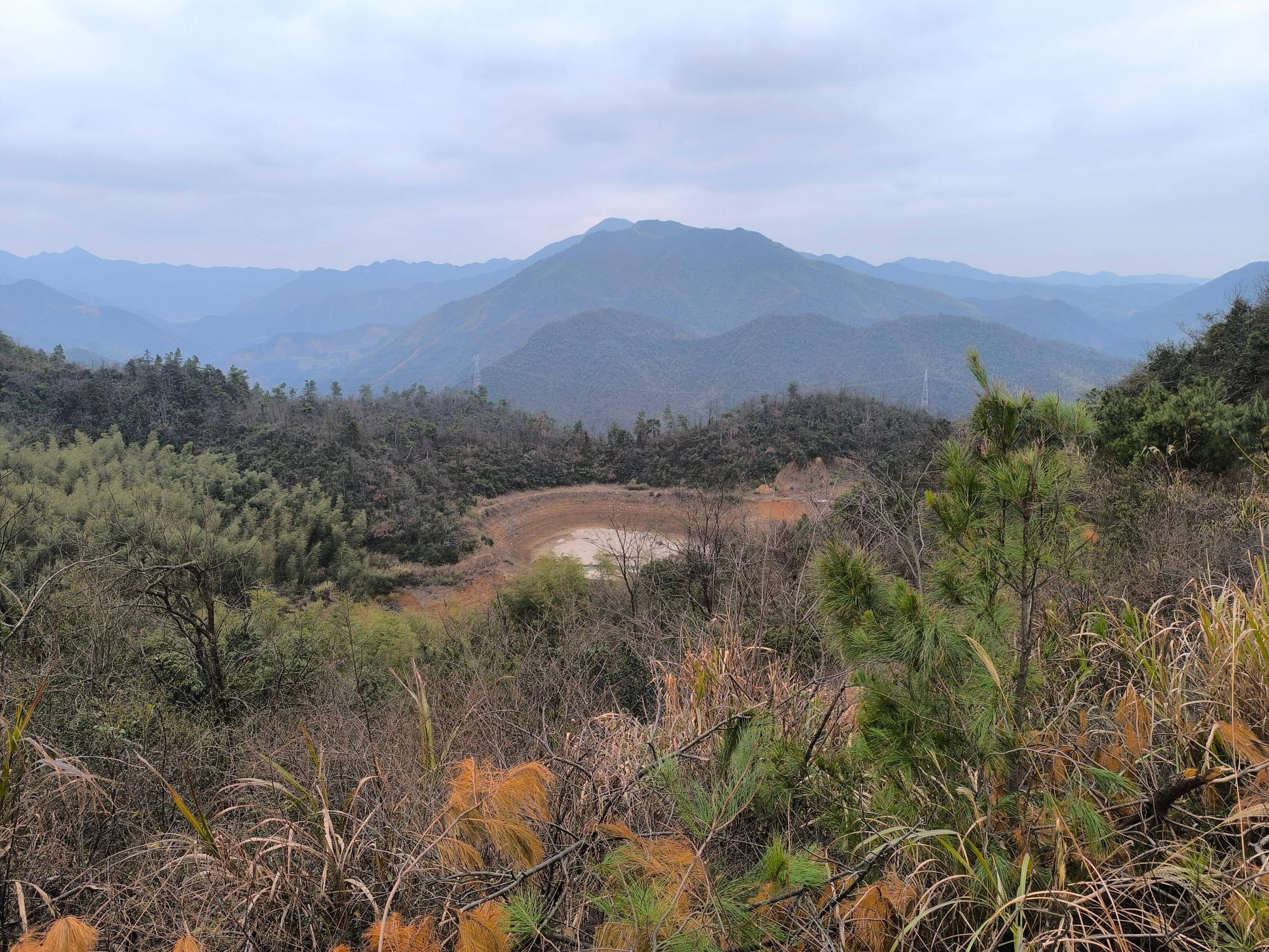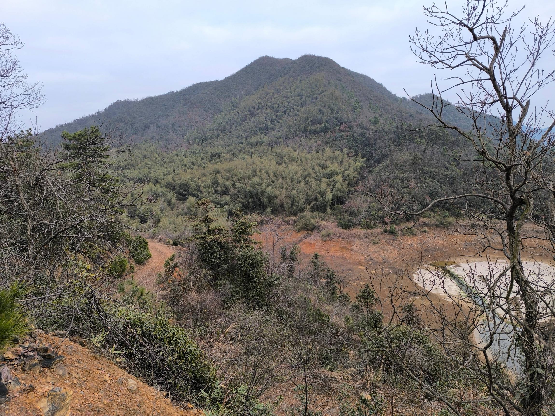 山顶遥望水库,注意左边的竹林
