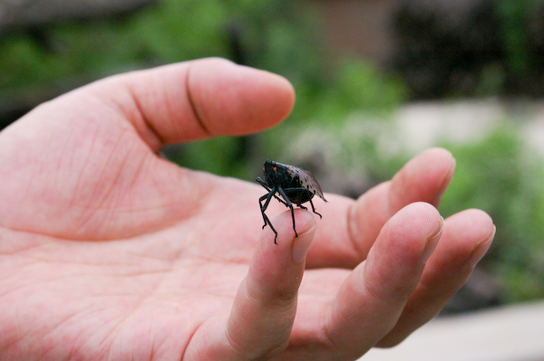 特别鸣谢“我的好友”同学奉献出他的手,让我近距离拍摄这只红斑蝉: